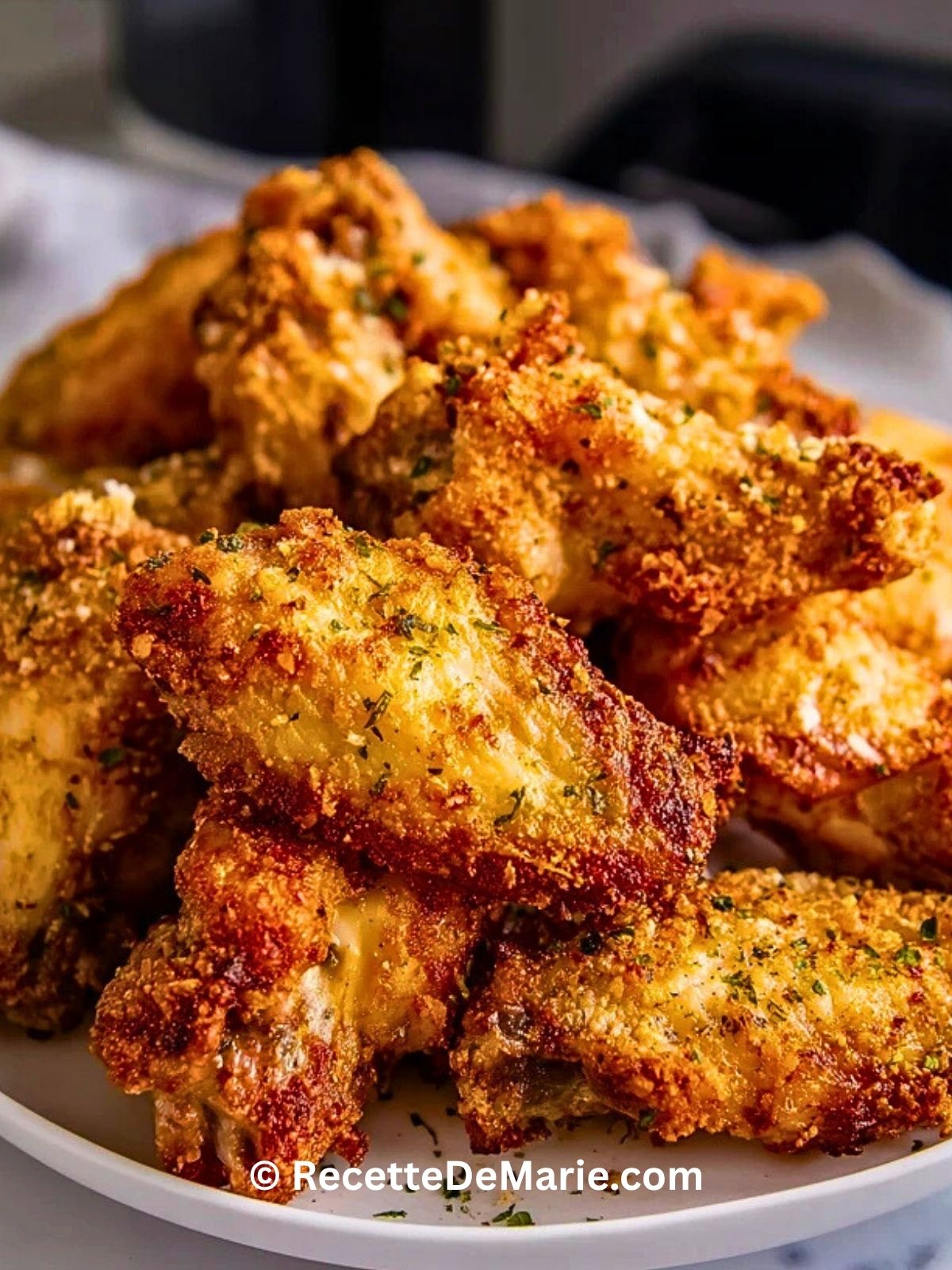 Je prépare souvent ces ailes de poulet panées au parmesan à la friteuse à air quand j’ai envie d’un plat gourmand sans sortir la grande friture. J’aime leur croûte bien dorée, le goût salé du parmesan et ce contraste entre l’extérieur croustillant et la viande encore juteuse à l’intérieur.