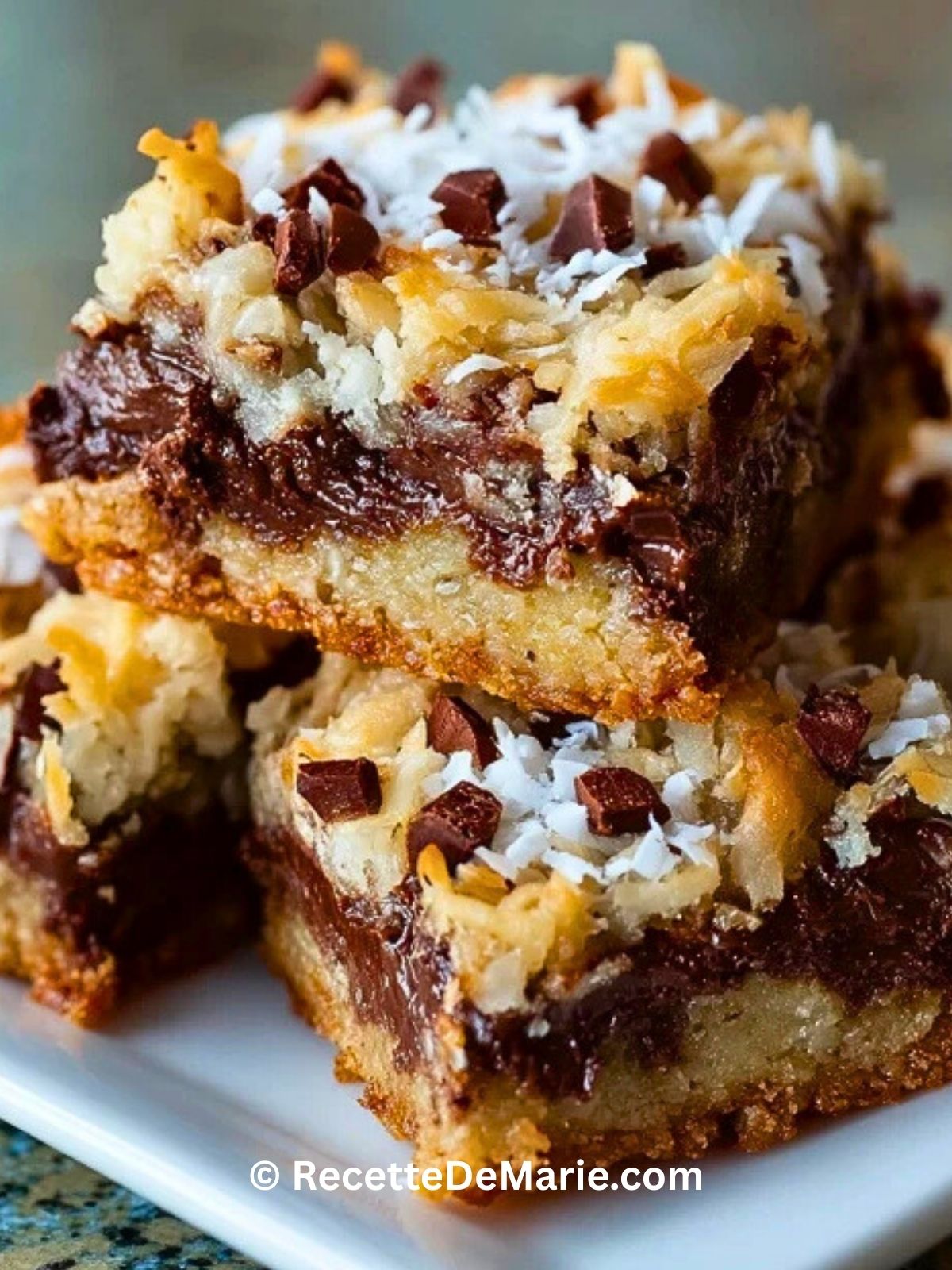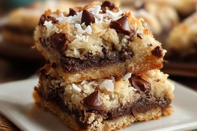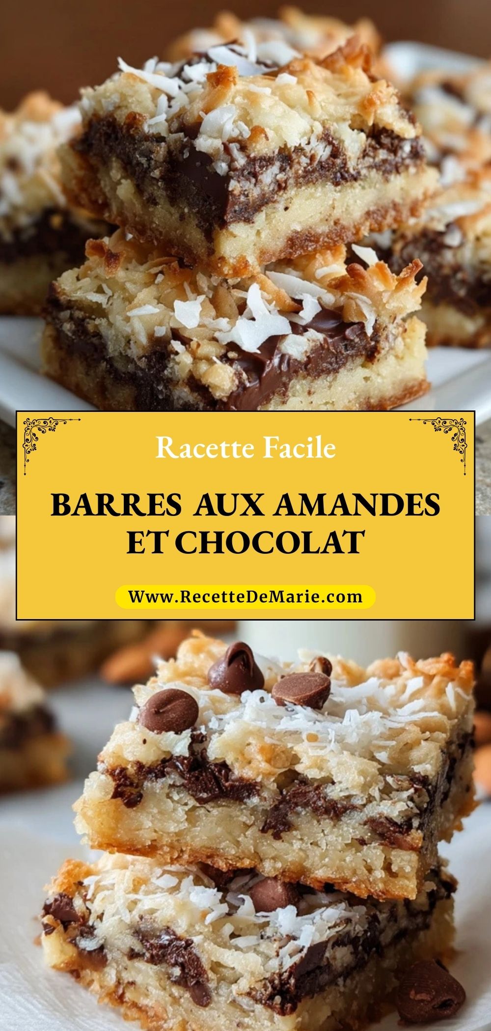 Quand j’ai envie d’un dessert à la fois réconfortant, fondant et croquant, je prépare ces barres aux amandes et chocolat. La première bouchée mêle la douceur de la noix de coco, la richesse du chocolat et le goût subtil des amandes. C’est une gourmandise qui me rappelle les goûters d’enfance, mais avec ce petit côté irrésistible qu’on retrouve dans les pâtisseries américaines.