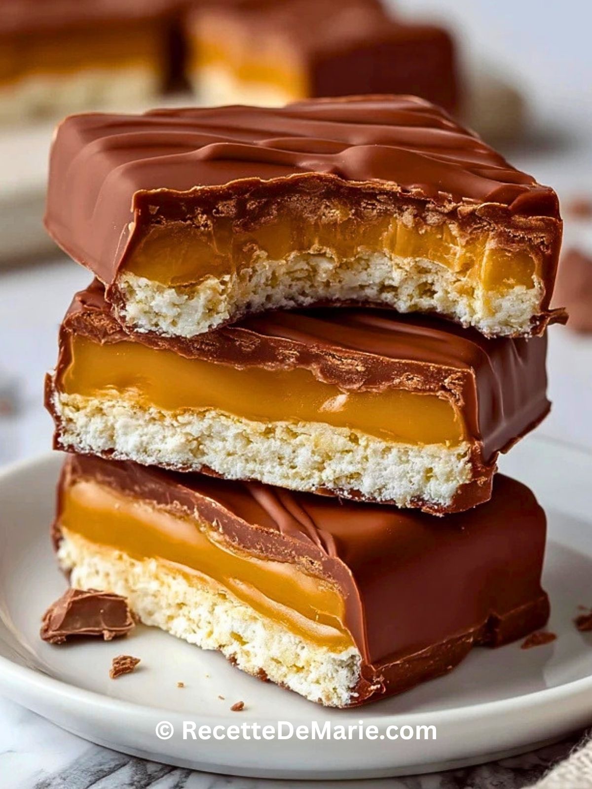 Vous allez aimer cette version maison pour sa texture irrésistible, à la fois tendre, crémeuse et fondante. Elle permet aussi d’obtenir des barres plus riches en goût que celles du commerce, avec une vraie couche de caramel et un enrobage chocolaté généreux.