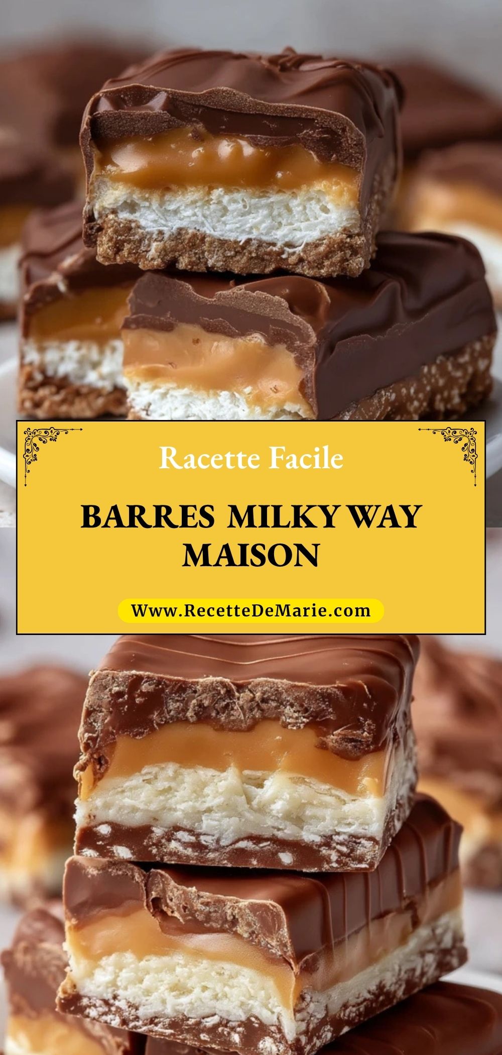 Ces Barres Milky Way Maison sont une gourmandise ultra fondante composée de chocolat au lait, d’un nougat moelleux et d’un caramel tendre. Faciles à préparer sans four, elles rappellent les célèbres barres chocolatées avec une texture encore plus généreuse. Une recette dessert maison idéale pour les amateurs de douceurs chocolatées et de confiseries faciles.