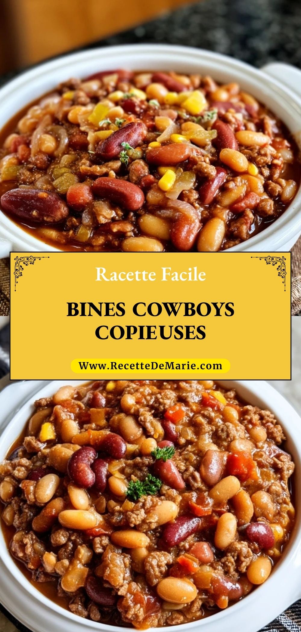 Keywords: bines cowboys, haricots au bœuf, chili doux maison, plat mijoté copieux