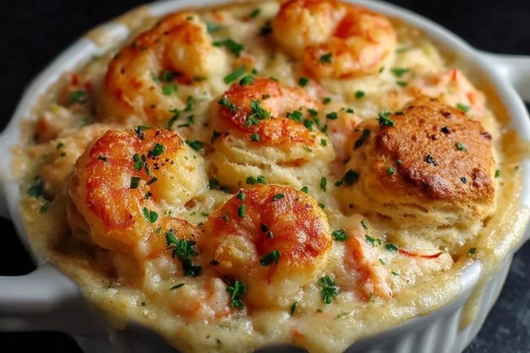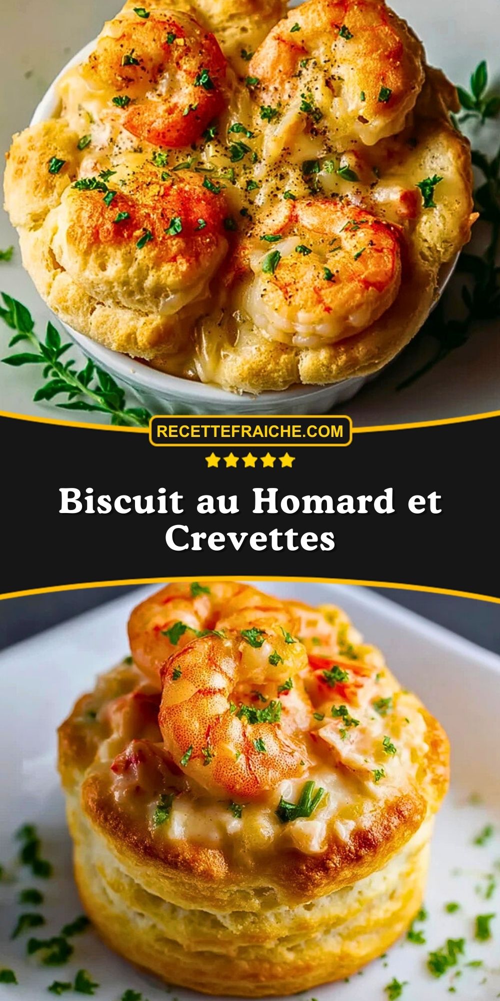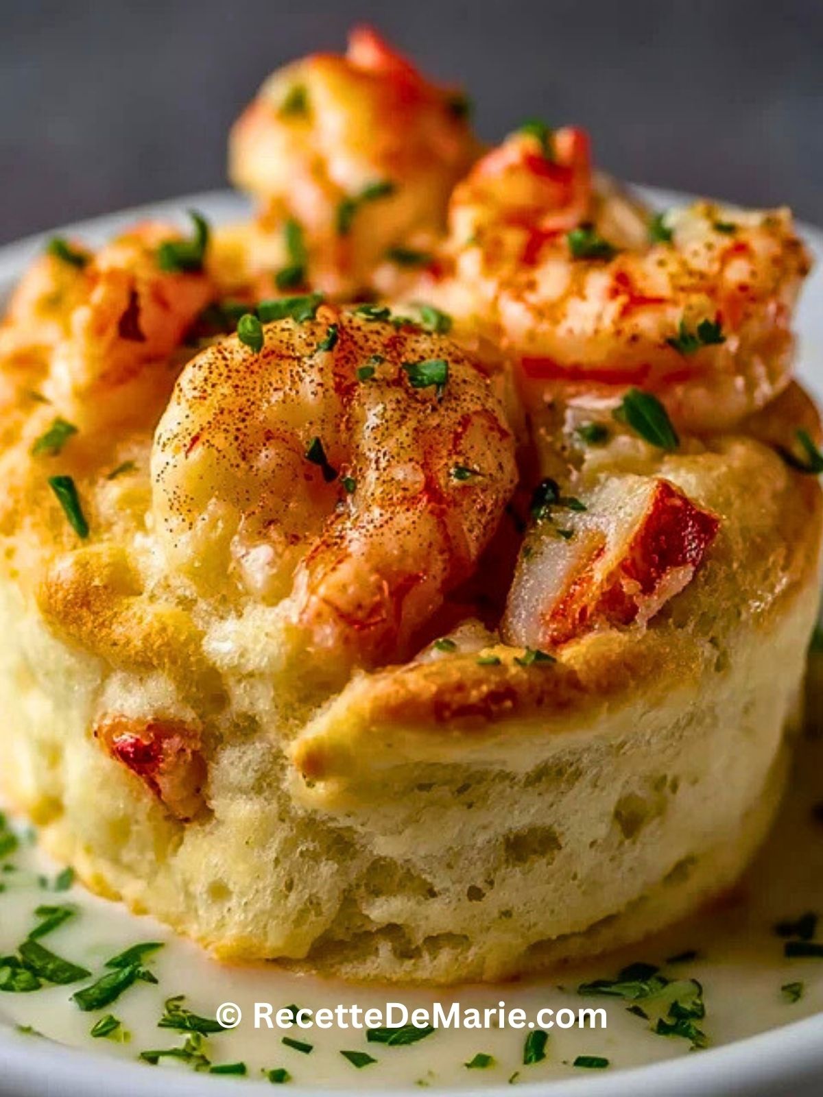 Gratin généreux de crevettes et homard nappés de sauce crémeuse, recouvert de biscuits moelleux dorés au four. Un plat festif, facile et réconfortant, parfait pour surprendre vos invités avec les saveurs de la mer.