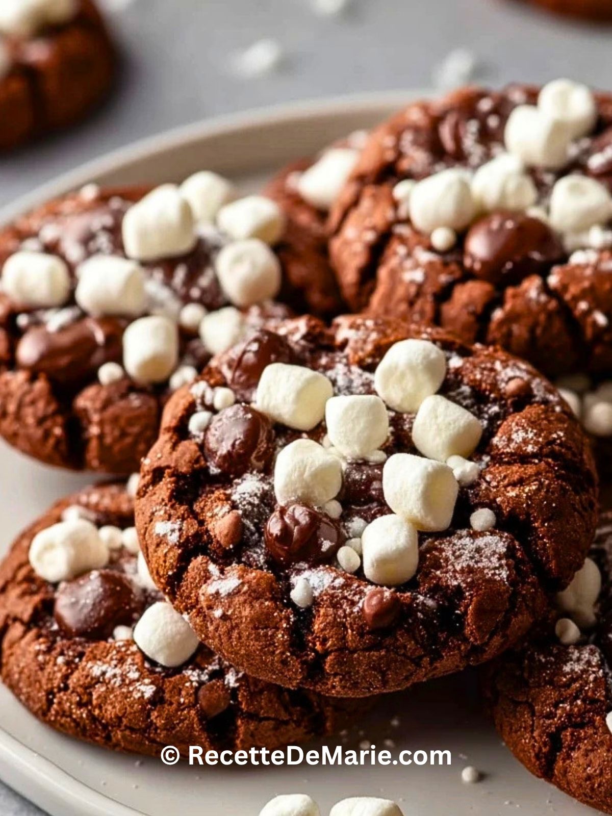 Keywords: biscuits au chocolat chaud, cookies chocolat, biscuits moelleux, mini-guimauves, dessert chocolat, goûter maison