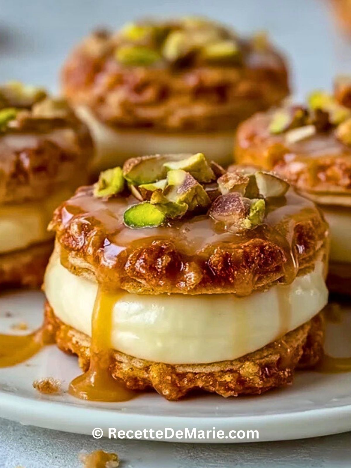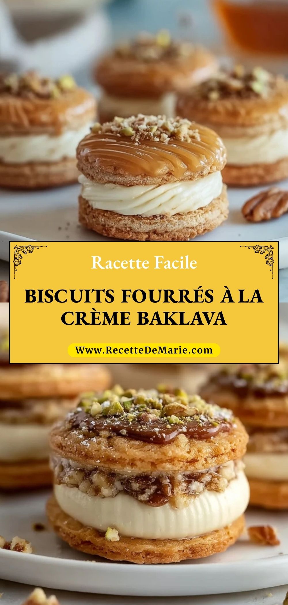 Ces biscuits fourrés à la crème baklava sont une petite merveille qui fera sensation sur votre table. À la fois croquants et fondants, ils combinent l’élégance d’un biscuit fait maison avec la richesse des saveurs orientales. Un vrai bonheur à partager !