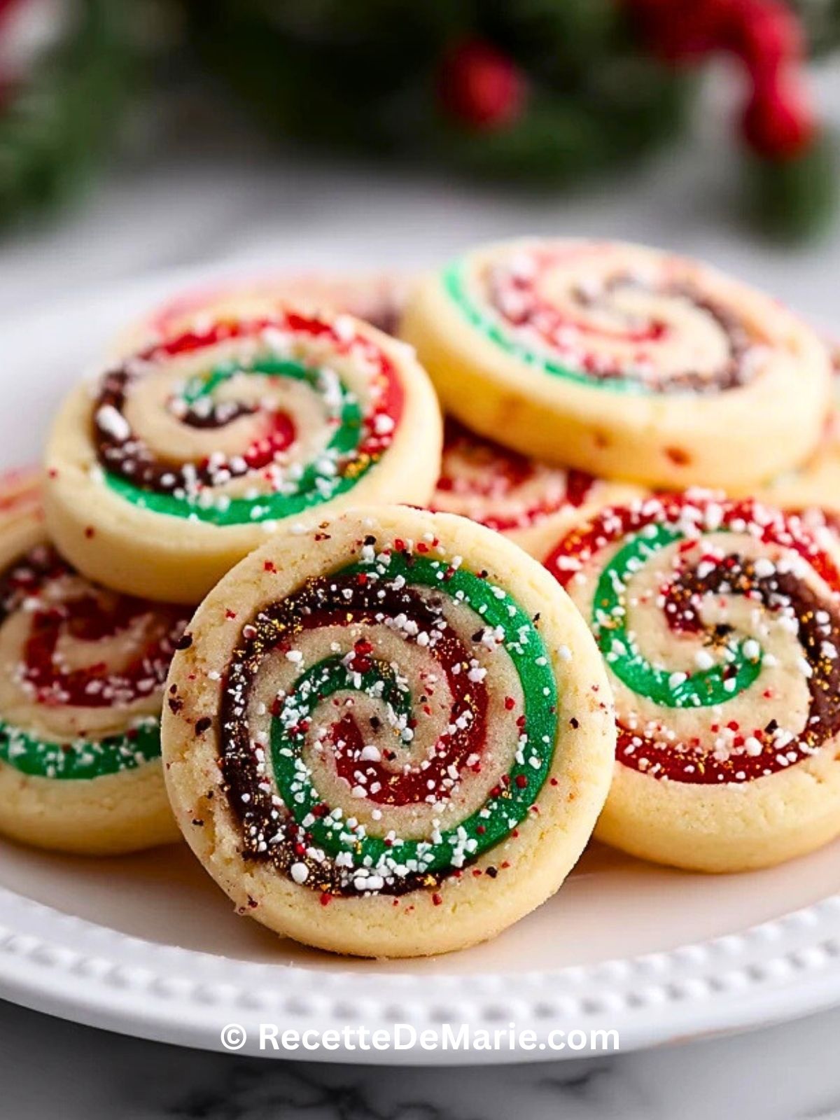 Les biscuits tourbillonnés de Noël sont parfaits pour les fêtes : croquants, colorés, au bon goût de vanille. Leur joli effet spiralé émerveille petits et grands. À réaliser facilement à la maison, ces biscuits festifs se préparent à l’avance et sont idéaux à offrir ou à déguster avec un chocolat chaud.