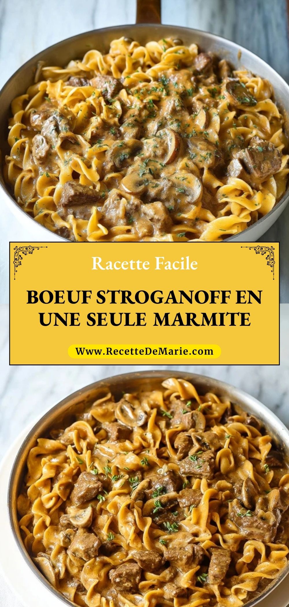 Keywords: boeuf stroganoff en une seule marmite, one pot pasta, pâtes crémeuses, boeuf et champignons