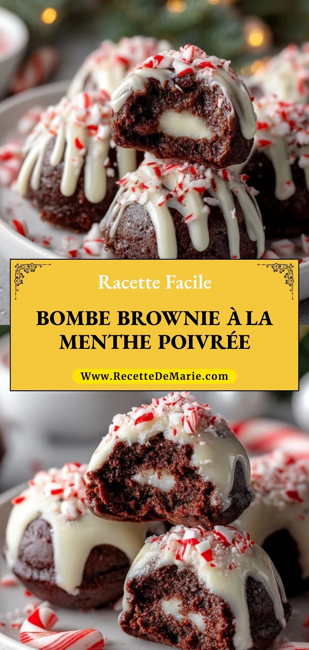 Keywords: bombe brownie à la menthe poivrée, dessert de Noël, brownie chocolat menthe, brownie festif, chocolat blanc, recette fêtes