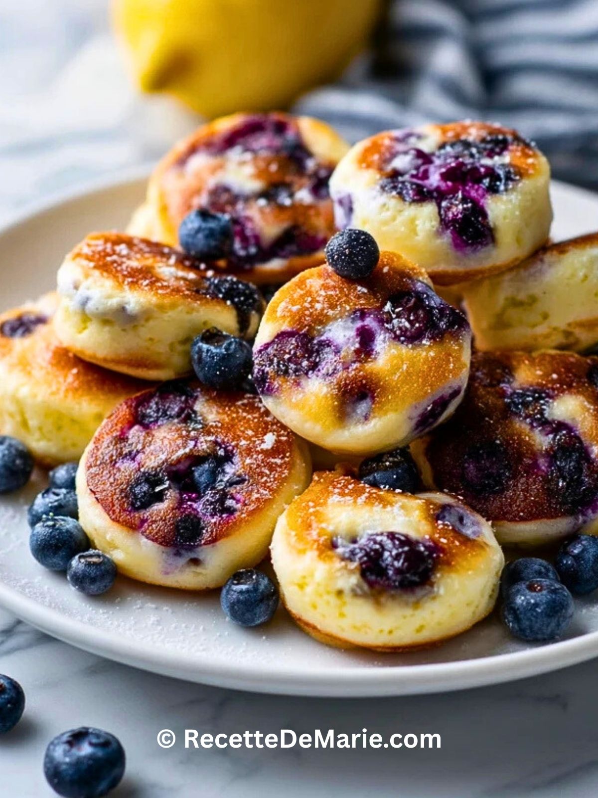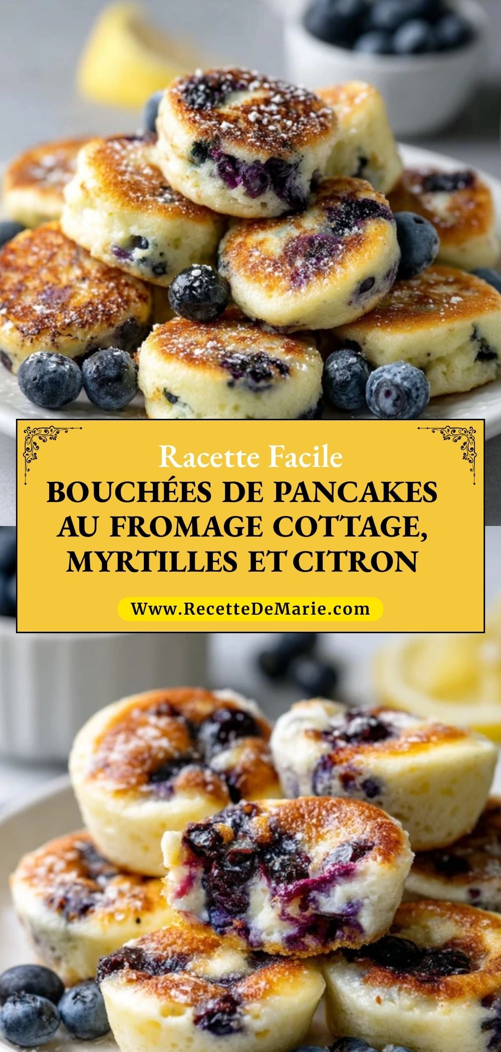 Keywords: bouchées de pancakes au fromage cottage, myrtilles et citron, pancakes protéinés, brunch facile, petit-déjeuner aux myrtilles, recette au citron