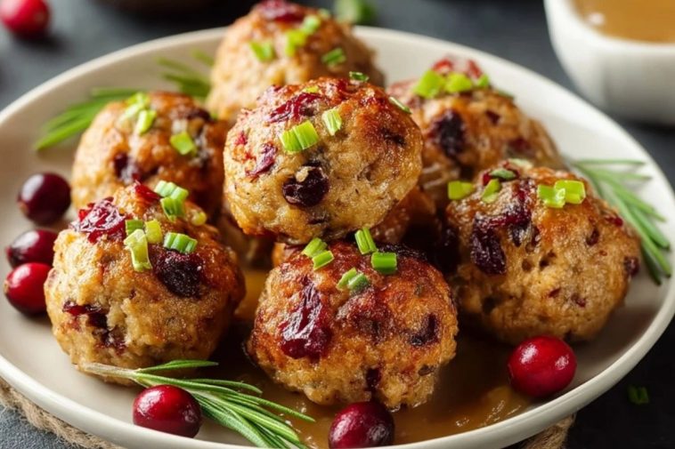 Boulettes moelleuses de dinde et farce, parfumées aux canneberges et herbes, parfaites pour les fêtes ou un dîner réconfortant. Faciles à préparer, elles offrent une touche sucrée-salée qui plaît à toute la famille.