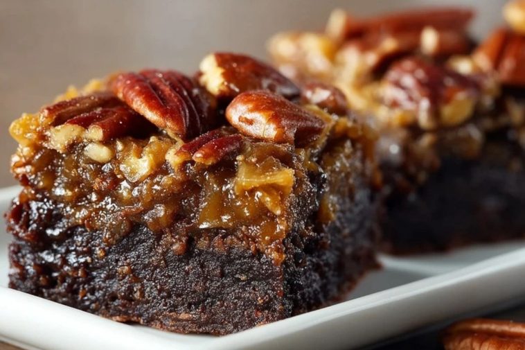 Laissez refroidir complètement avant de découper en carrés. Vous pouvez ajouter quelques noix de pécan entières sur le dessus pour la déco.