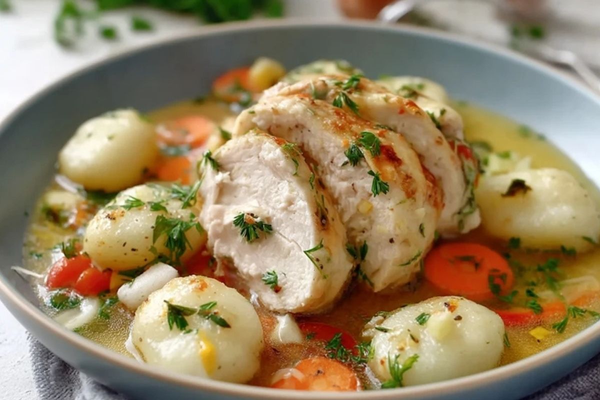 Poulet Parfait Avec Des Gnocchis Et Des Légumes