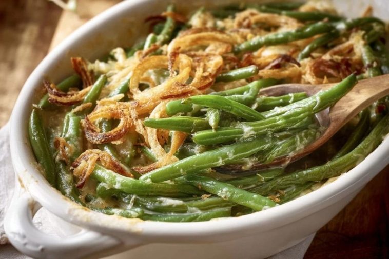 Un accompagnement crémeux et réconfortant à base de haricots verts, sauce aux champignons et oignons frits croustillants. Facile, rapide, parfait pour les repas de famille ou les fêtes.
