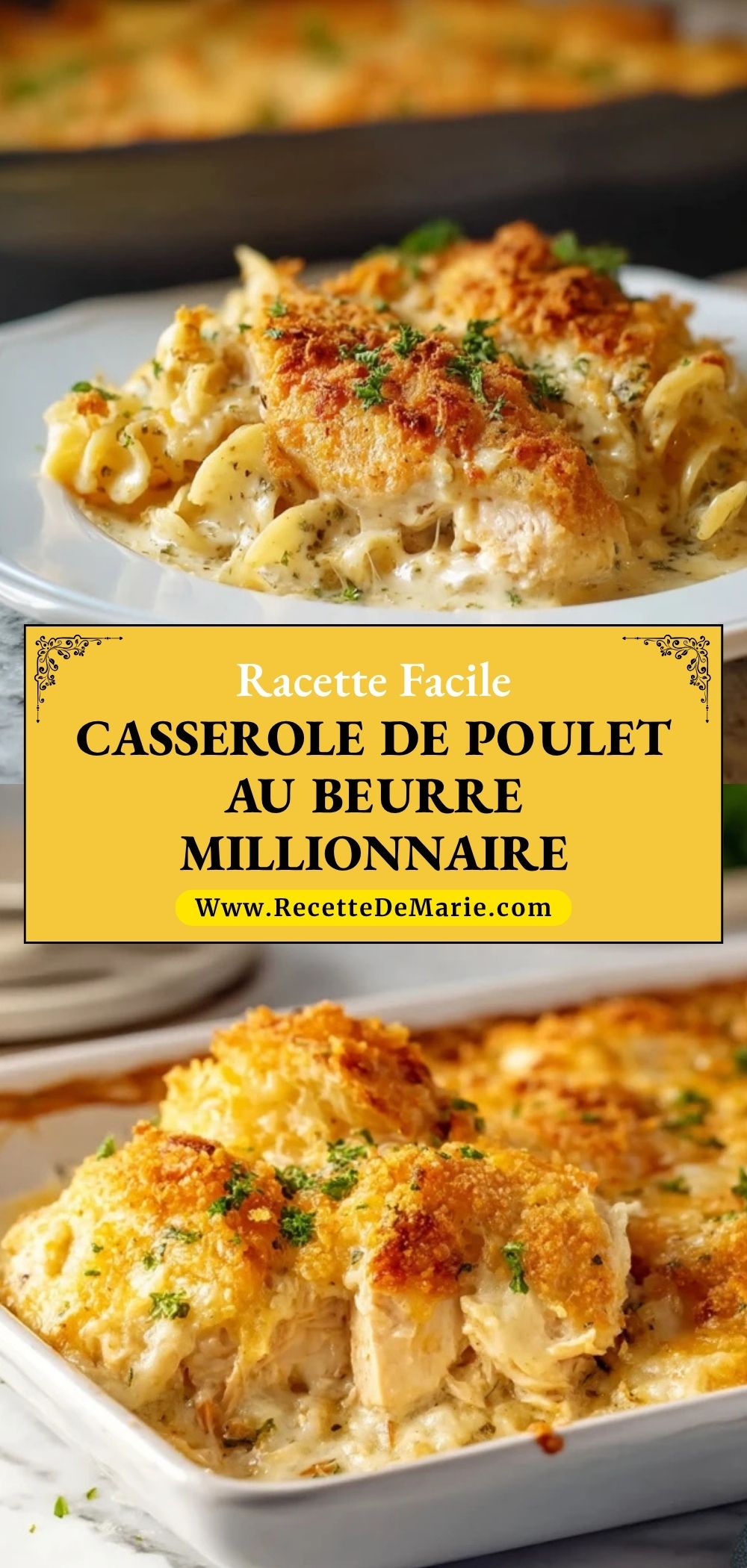 Keywords: casserole de poulet au beurre millionnaire, gratin de poulet crémeux, casserole de poulet et pâtes, recette poulet gratiné, plat familial facile