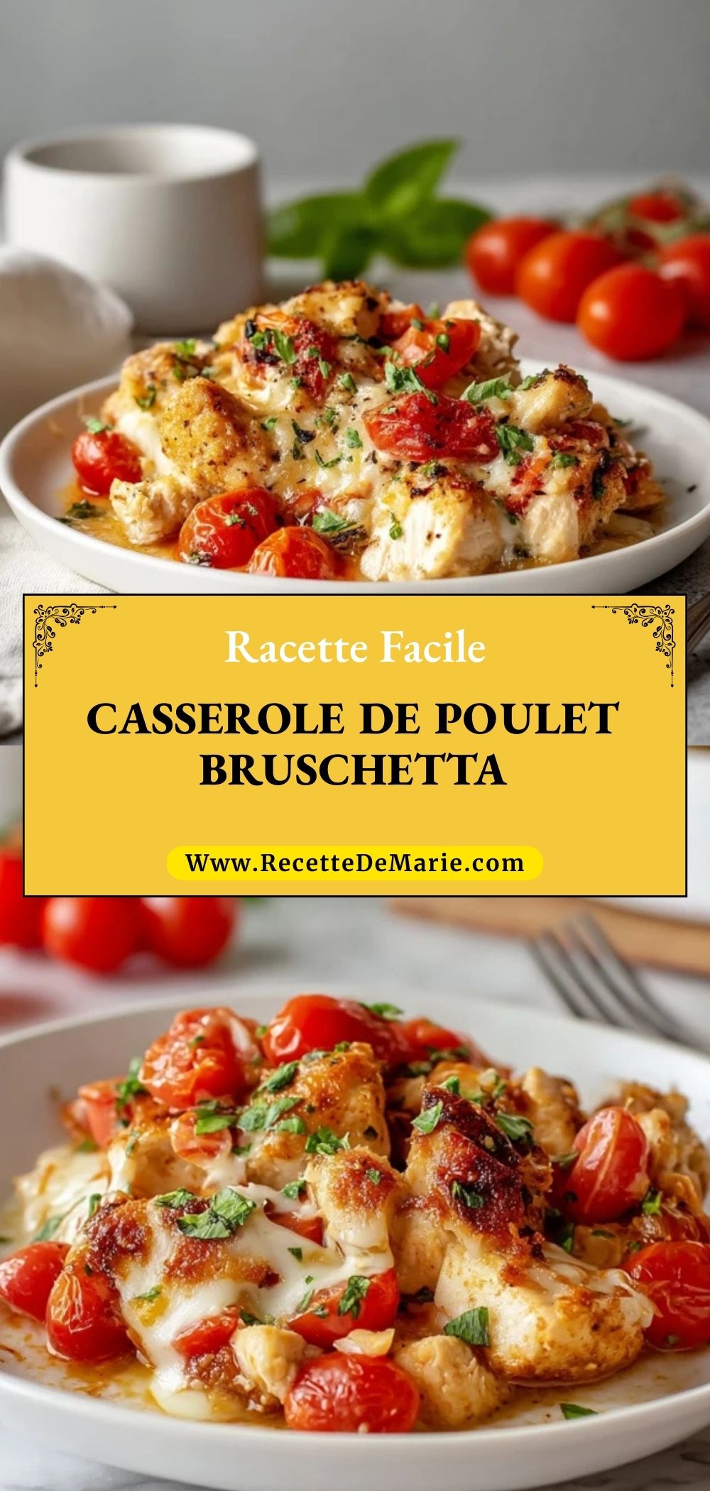 Keywords: casserole de poulet bruschetta, poulet gratiné tomates mozzarella, recette poulet facile, plat familial au four, poulet basilic balsamique