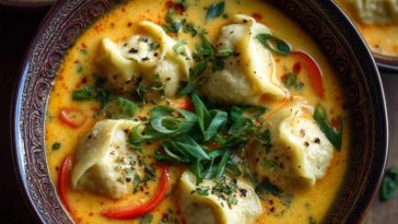 • Soupe Thaïlandaise Au Curry De Noix De Coco Avec Des Raviolis