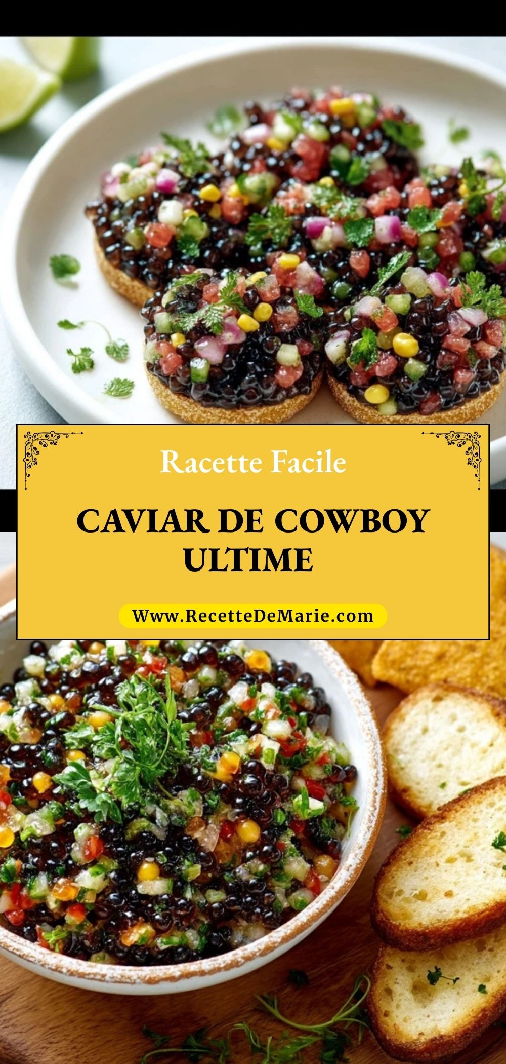 Le Caviar de Cowboy ultime, la star des apéros texans, est une salade composée riche en haricots, légumes croquants, herbes fraîches et vinaigrette citronnée. Frais, coloré et ultra facile, il se sert en dip, salade ou accompagnement convivial à partager !