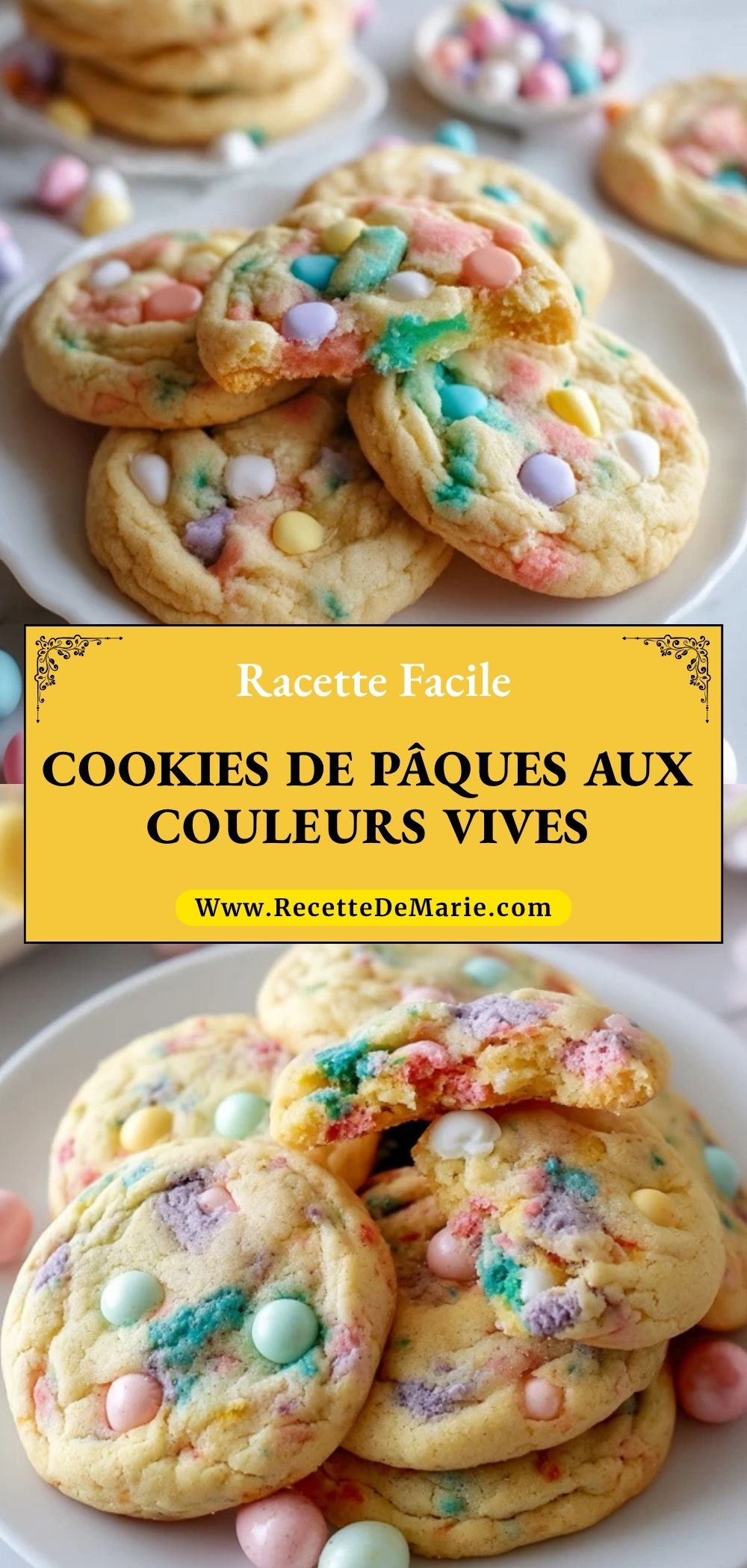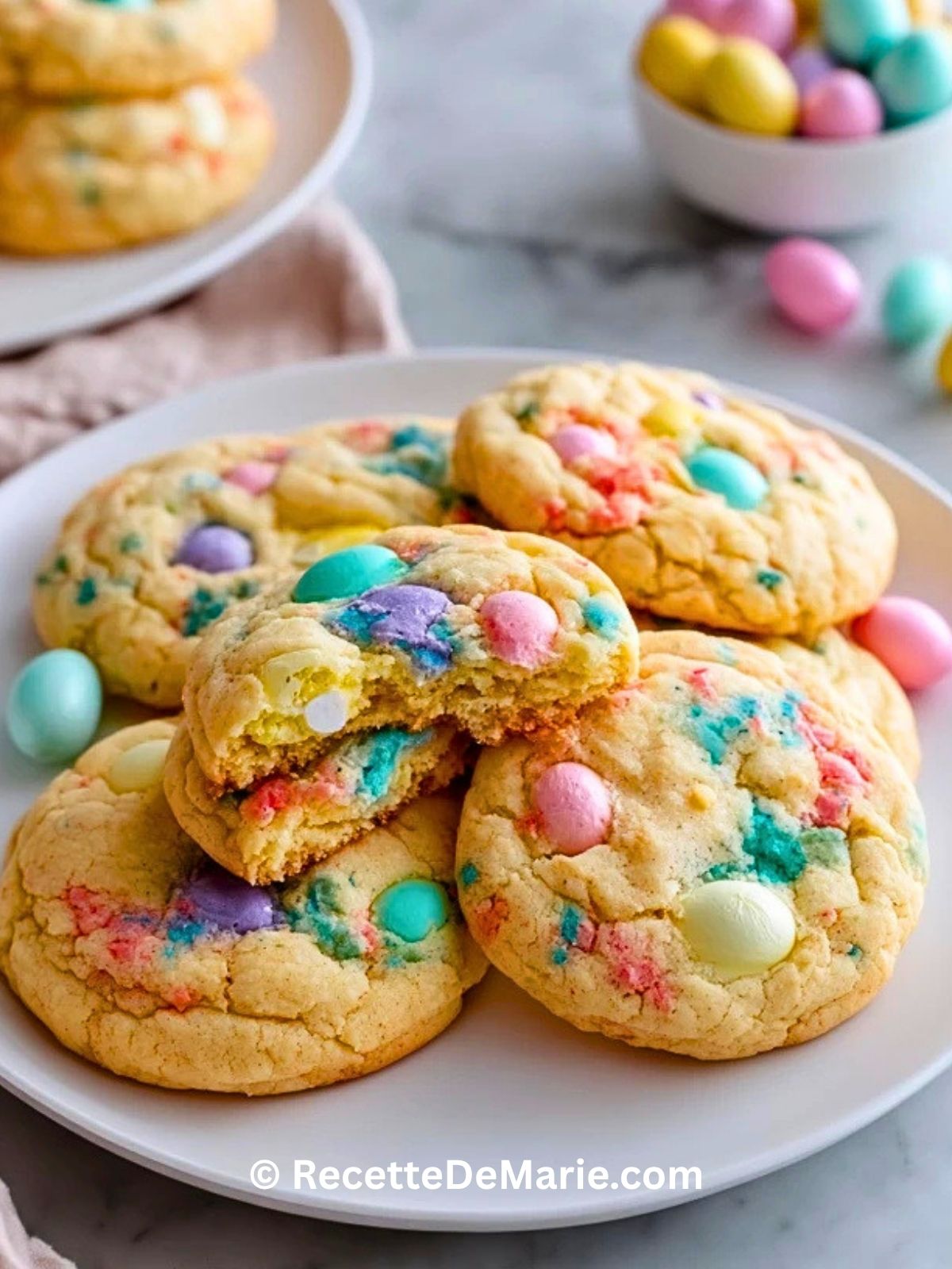 Keywords: cookies de Pâques, cookies pastel, biscuits de Pâques, cookies moelleux, recette facile de Pâques, mini œufs chocolatés