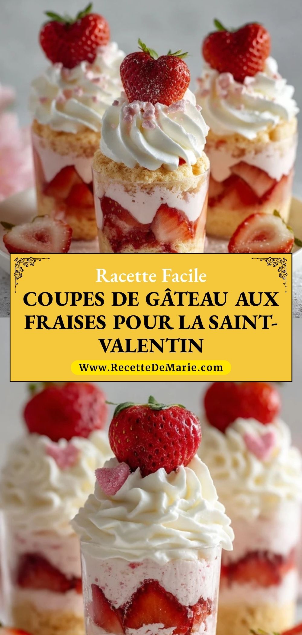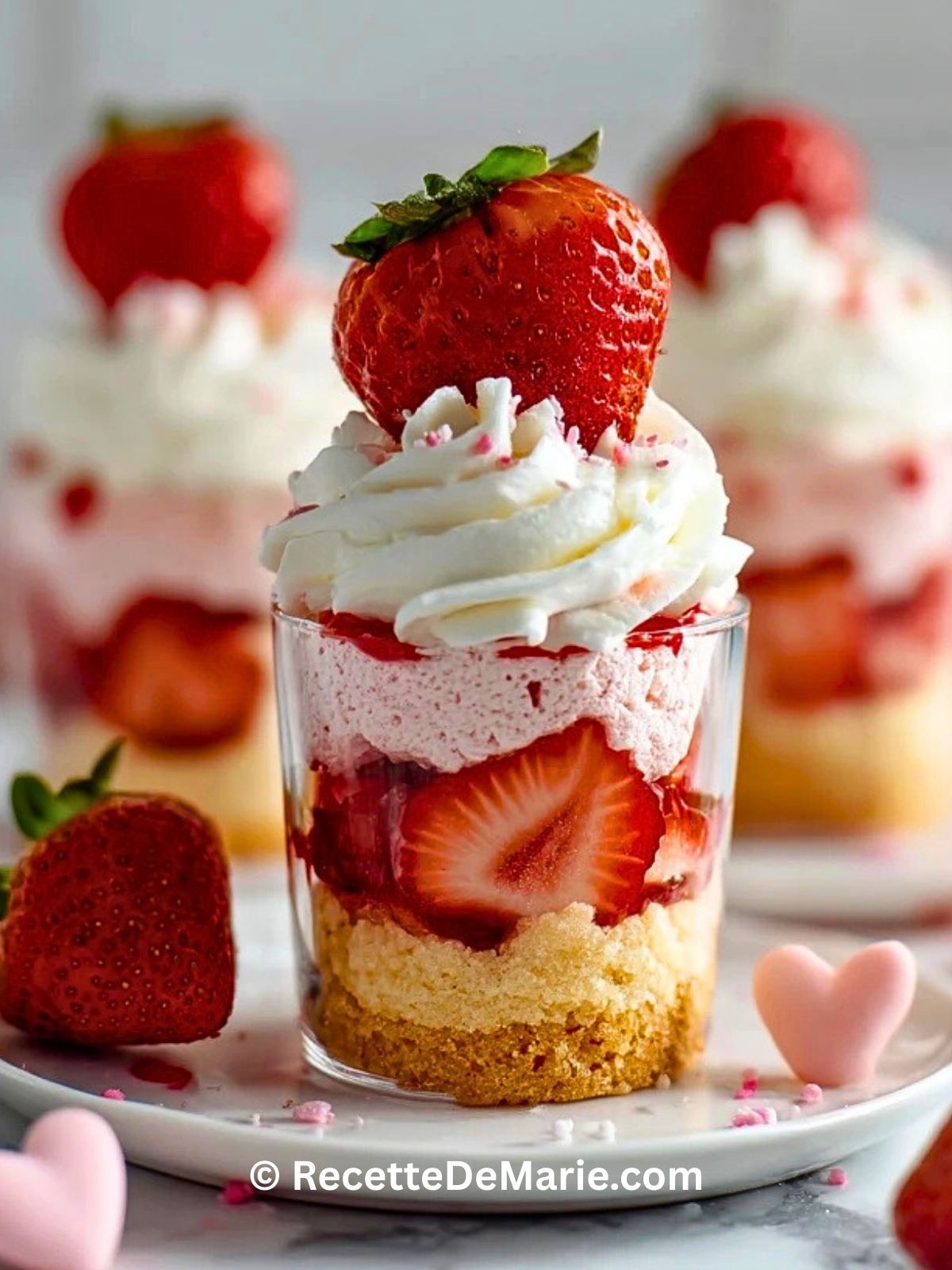 Ces Coupes De Gâteau Aux Fraises Pour La Saint-Valentin sont la preuve qu’un dessert élégant peut rester simple à préparer. J’aime leur allure délicate, leur saveur fruitée et leur texture ultra gourmande qui plaît presque à tous les coups. C’est une belle idée pour célébrer un moment tendre ou tout simplement pour se faire plaisir avec quelque chose de joli et de bon.
