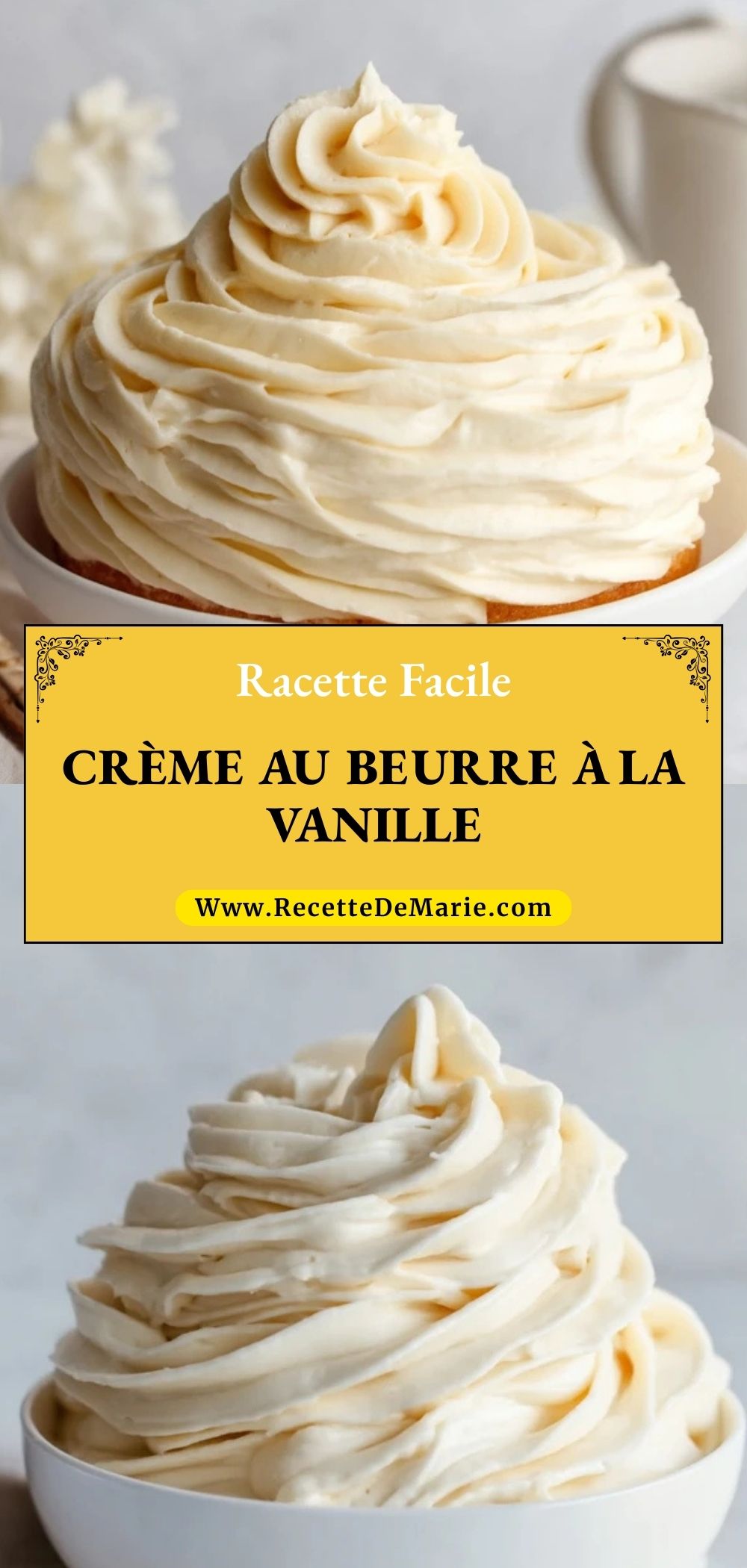 Enregistrez cette crème au beurre à la vanille sur Pinterest et partagez-la avec vos proches ! Que vous l’utilisiez sur un gâteau, des cupcakes ou pour une création originale, envoyez-moi vos photos et variantes : nature, colorée, ou agrémentée d’une pointe de citron, toutes les idées sont les bienvenues.