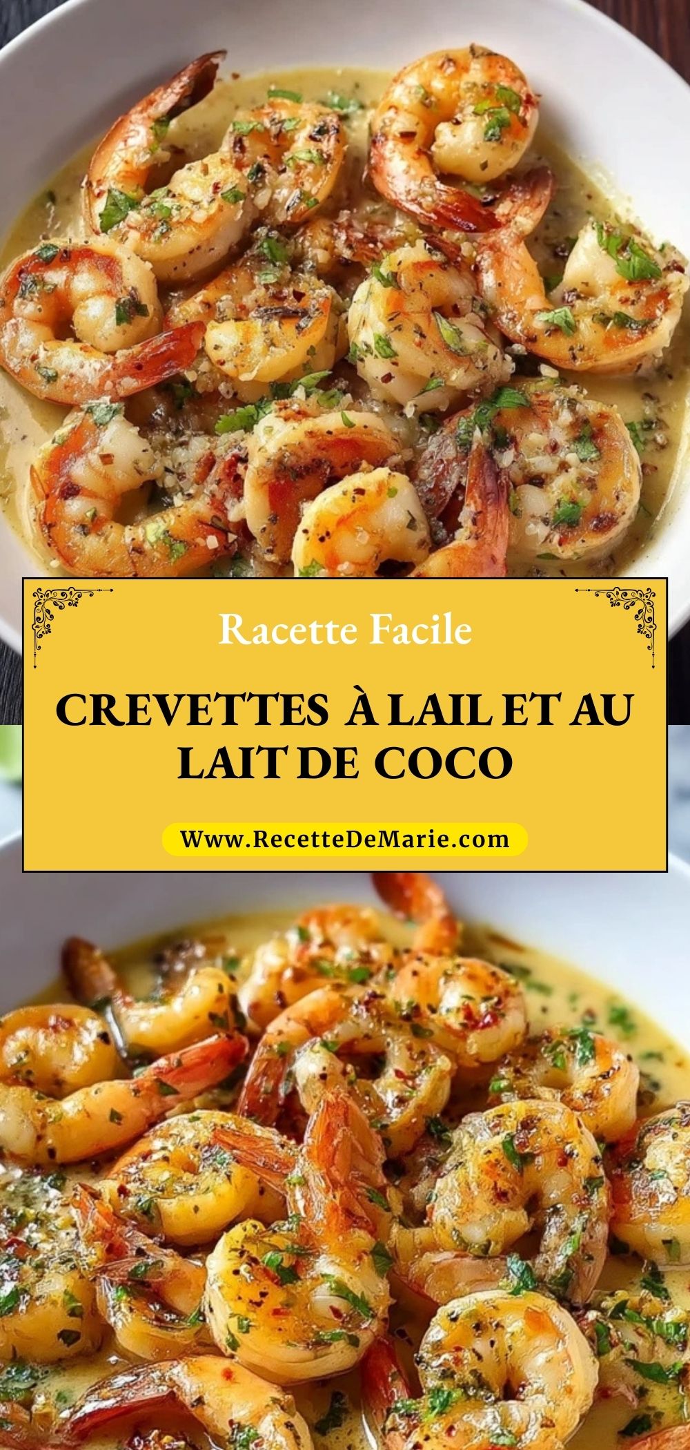 Keywords: crevettes, ail, lait de coco, plat rapide, dîner, recette facile, sans gluten