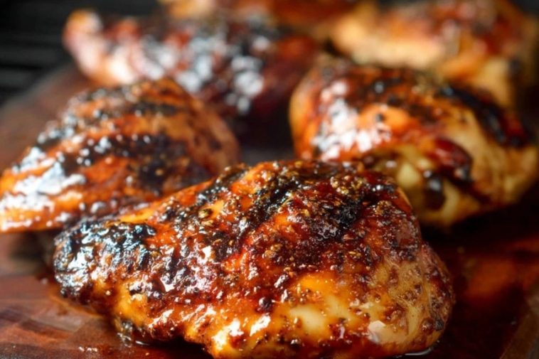 Cuisses de poulet désossées grillées au barbecue, marinées au miel, ail et herbes fraîches. Une recette facile, juteuse et savoureuse, parfaite pour les repas d’été et les grillades conviviales.