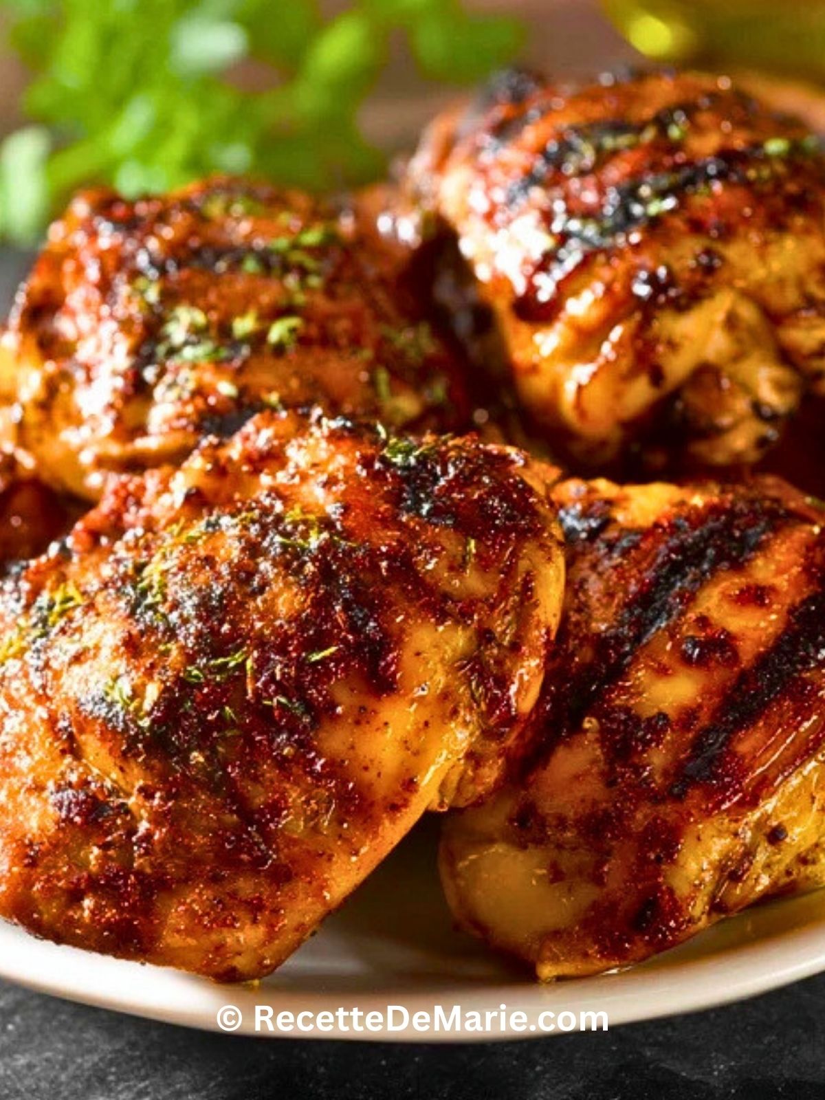 Keywords: poulet barbecue, cuisses de poulet grillées, marinade miel ail