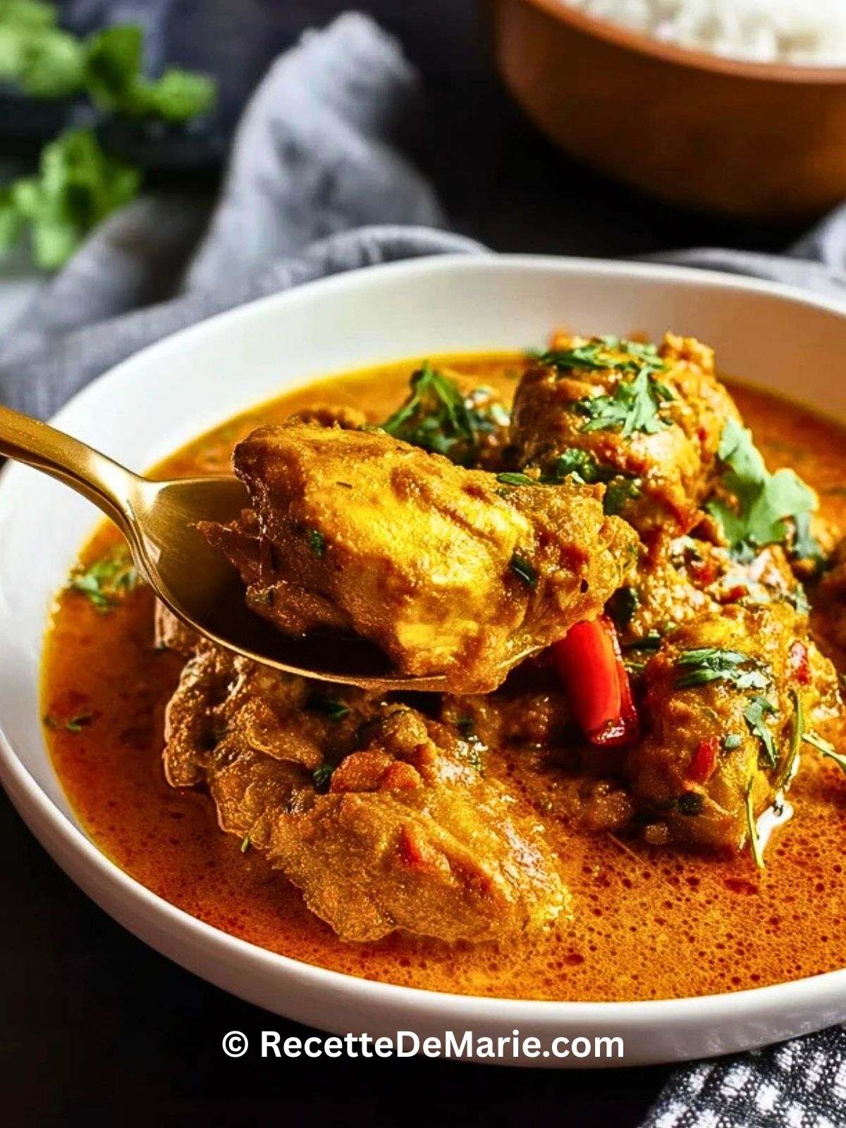 Je ne sais pas pour toi, mais pour moi, un bon curry de poulet fait partie de ces plats réconfortants qui transforment une simple soirée en moment chaleureux. Ce Curry De Poulet Africain, parfumé aux épices et au lait de coco, me ramène toujours à ces tables conviviales où l’on partage le plat au centre, on se ressert du riz sans compter et on sauce l’assiette jusqu’à la dernière goutte.