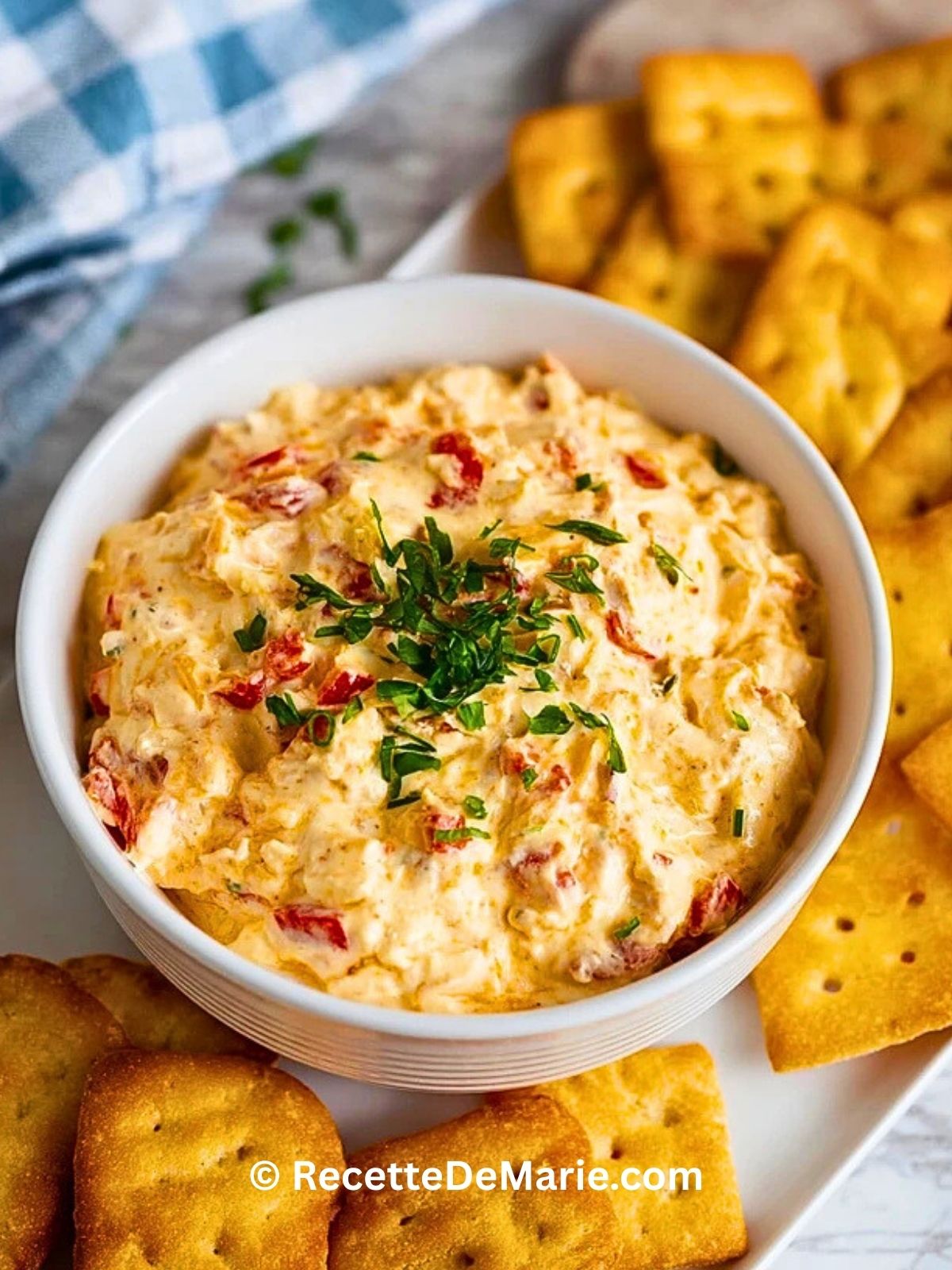 - Servez immédiatement avec des crackers, des tortillas chips ou des crudités.