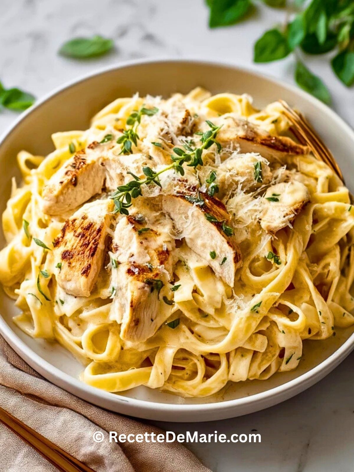 Keywords: fettuccine alfredo au poulet, pâtes crémeuses, recette facile, dîner familial, poulet alfredo, pâtes au parmesan