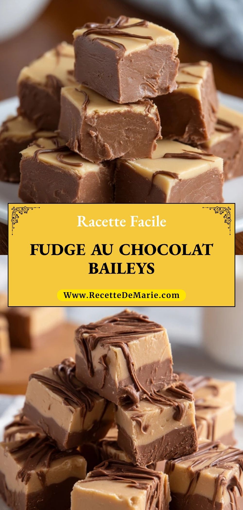 Je reviens souvent à ce Fudge Au Chocolat Baileys quand j’ai envie d’un dessert simple, chic et vraiment gourmand. J’aime son contraste entre la douceur fondante du chocolat blanc, la profondeur du chocolat noir et cette petite note crémeuse de Baileys qui donne tout de suite une touche festive à chaque bouchée.