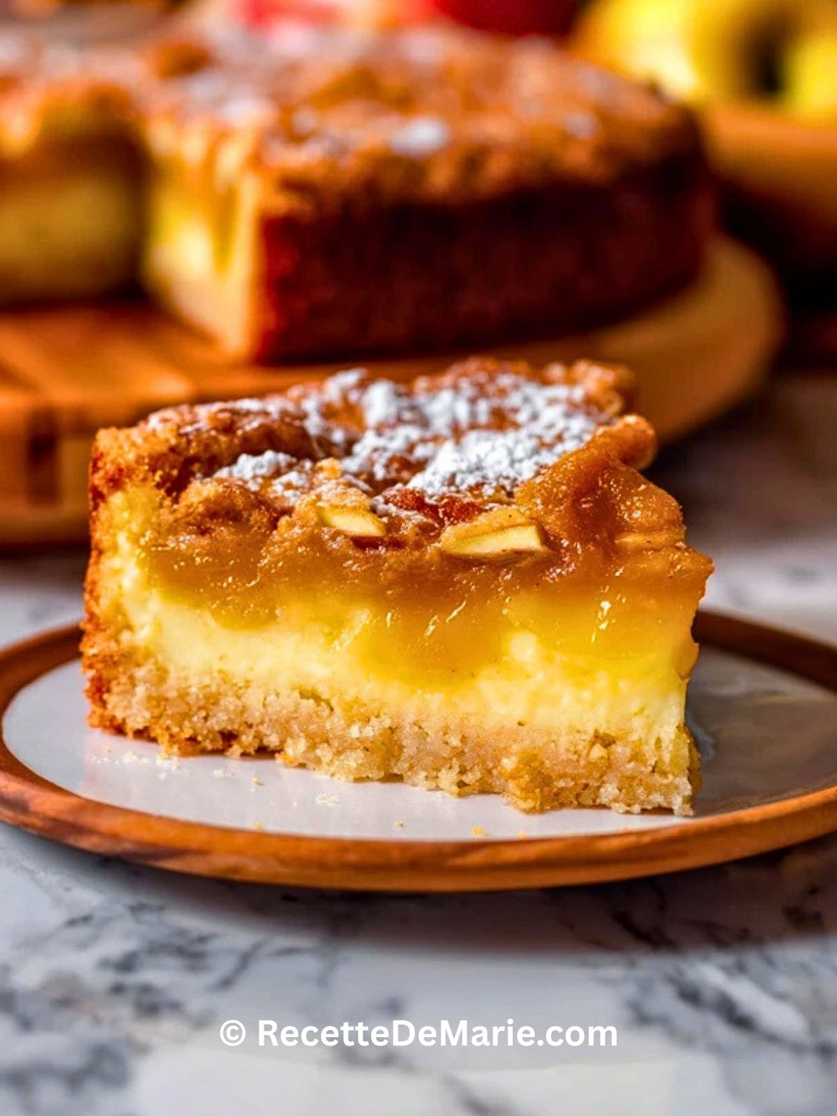 Gâteau fondant au beurre et aux pommes, à la texture collante et dorée. Un dessert simple, parfumé et ultra réconfortant, parfait pour l’automne ou un goûter gourmand.