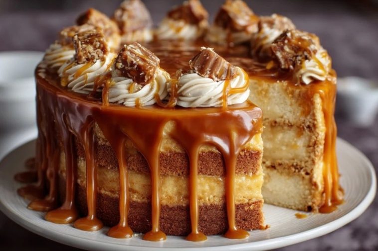 Je prépare ce gâteau chaque fois que j’ai envie d’un dessert à la fois élégant et profondément satisfaisant. Sa texture moelleuse, sa garniture crémeuse et son nappage au caramel légèrement salé le rendent irrésistible. Et pourtant, il est bien plus simple à réaliser qu’il n’en a l’air.
