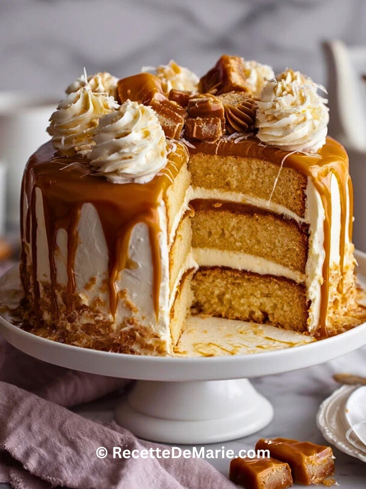 Ce Decadent Caramel Cake est la définition même du plaisir sucré. Fondant, parfumé, gourmand… il rassemble tous les ingrédients d’un moment réconfortant. Parfait pour impressionner vos invités ou vous faire plaisir sans attendre une occasion spéciale.