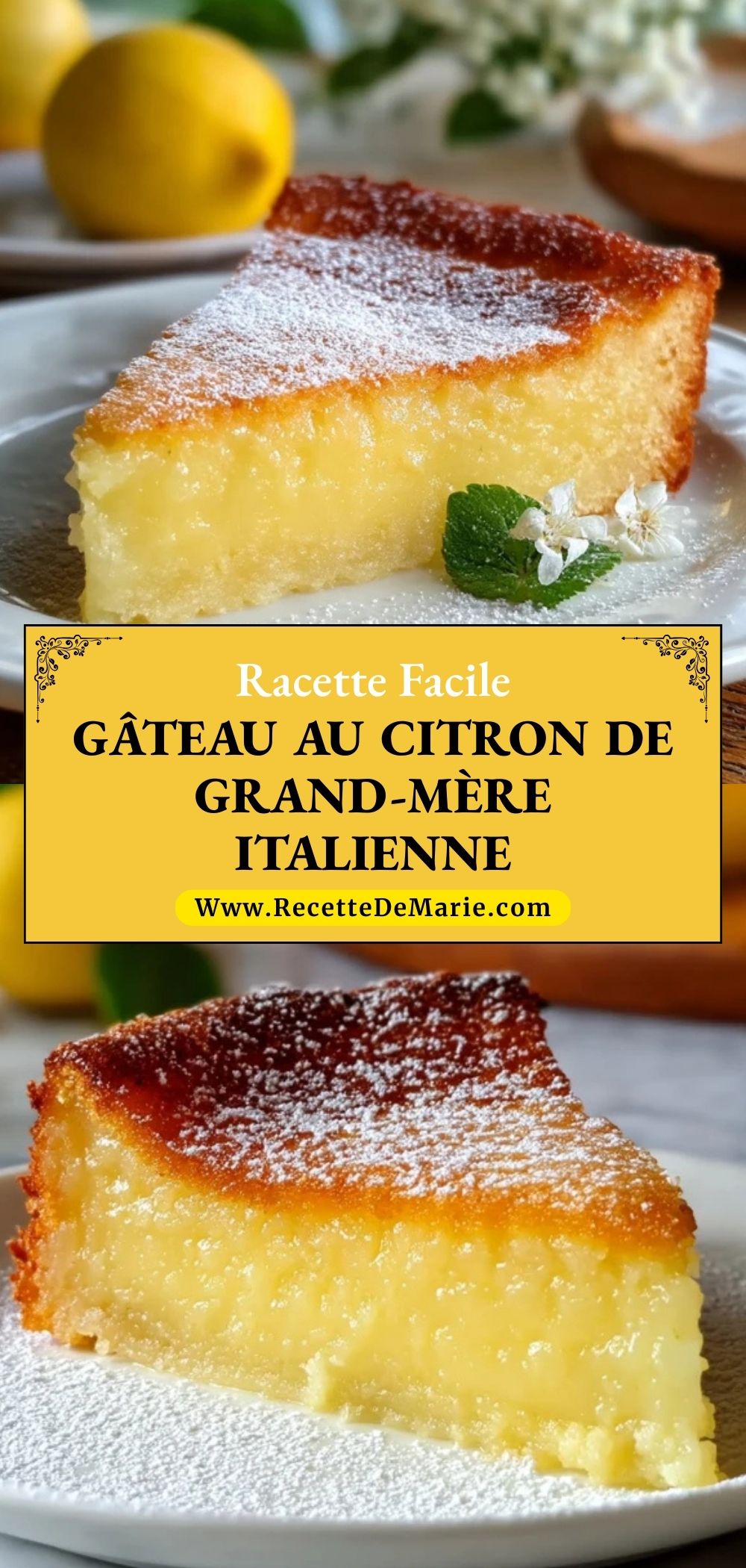 Je suis ravie de partager aujourd’hui cette recette qui illumine les fins de repas comme les goûters, moelleuse à cœur et délicatement acidulée. Que vous ayez la nostalgie des desserts d’antan ou l’envie de faire voyager vos papilles en Italie, ce gâteau au citron de grand-mère promet de conquérir tout le monde avec sa simplicité et sa générosité.
