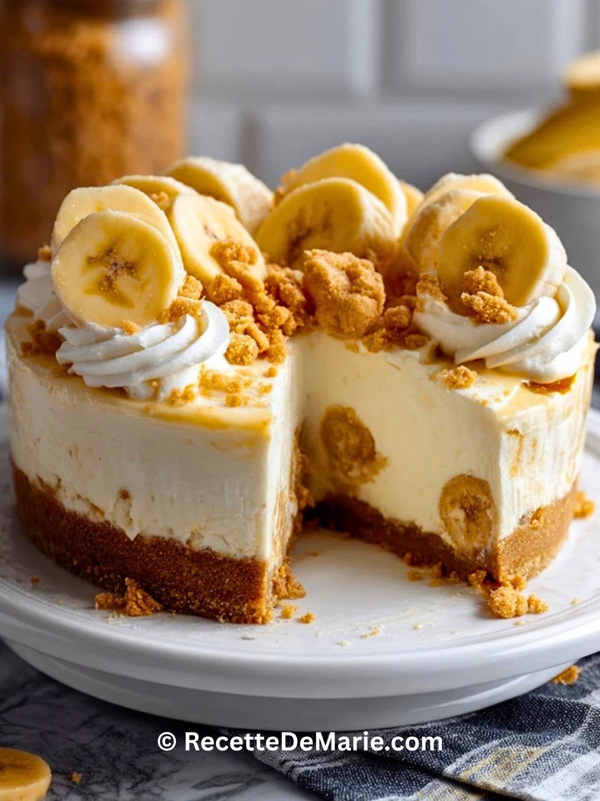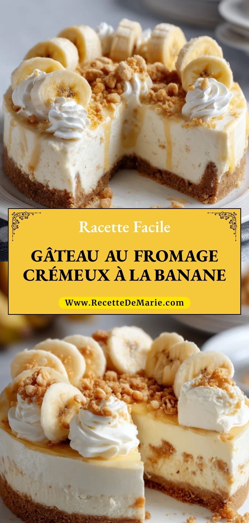Keywords: gâteau au fromage à la banane, cheesecake banane, dessert crémeux, dessert à la banane, gâteau au fromage maison