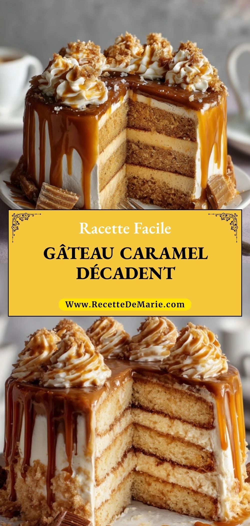 Je dois t’avouer que ce Gâteau Caramel Décadent fait partie de ces desserts que j’aime préparer quand je veux vraiment impressionner sans tomber dans quelque chose de compliqué à suivre. Entre les couches moelleuses, la douceur intense du caramel qui coule sur les bords et la finition généreuse à la crème, chaque bouchée donne cette sensation de dessert de fête qu’on n’oublie pas.