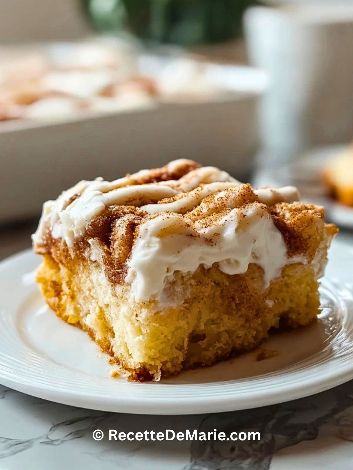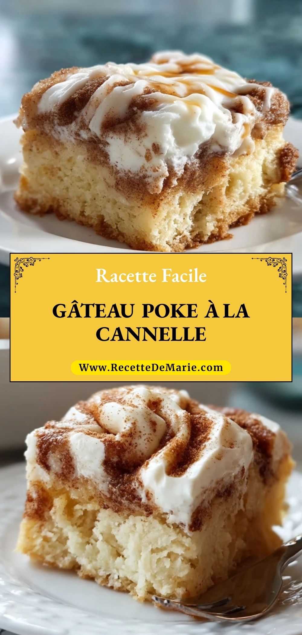 Keywords: gâteau poke à la cannelle, gâteau à la cannelle, dessert moelleux, gâteau fondant, recette facile, brunch sucré, gâteau glacé