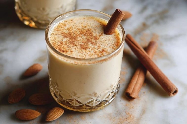 J’ai toujours adoré le lait de poule pendant les fêtes, mais en tant que personne qui préfère éviter les produits laitiers et les œufs, j’ai longtemps cherché une alternative végétalienne qui soit à la hauteur. C’est ainsi que j’ai découvert cette version au lait d’amande, incroyablement crémeuse, parfumée et réconfortante.
