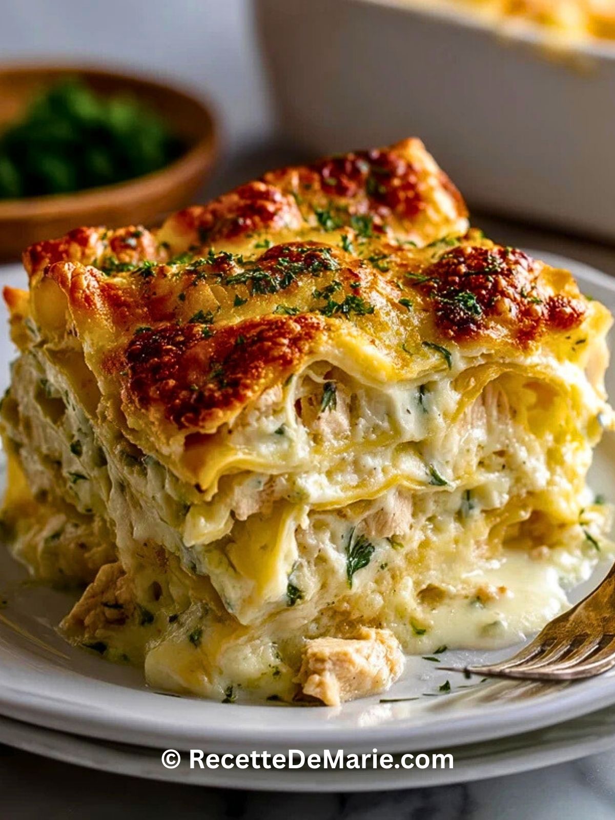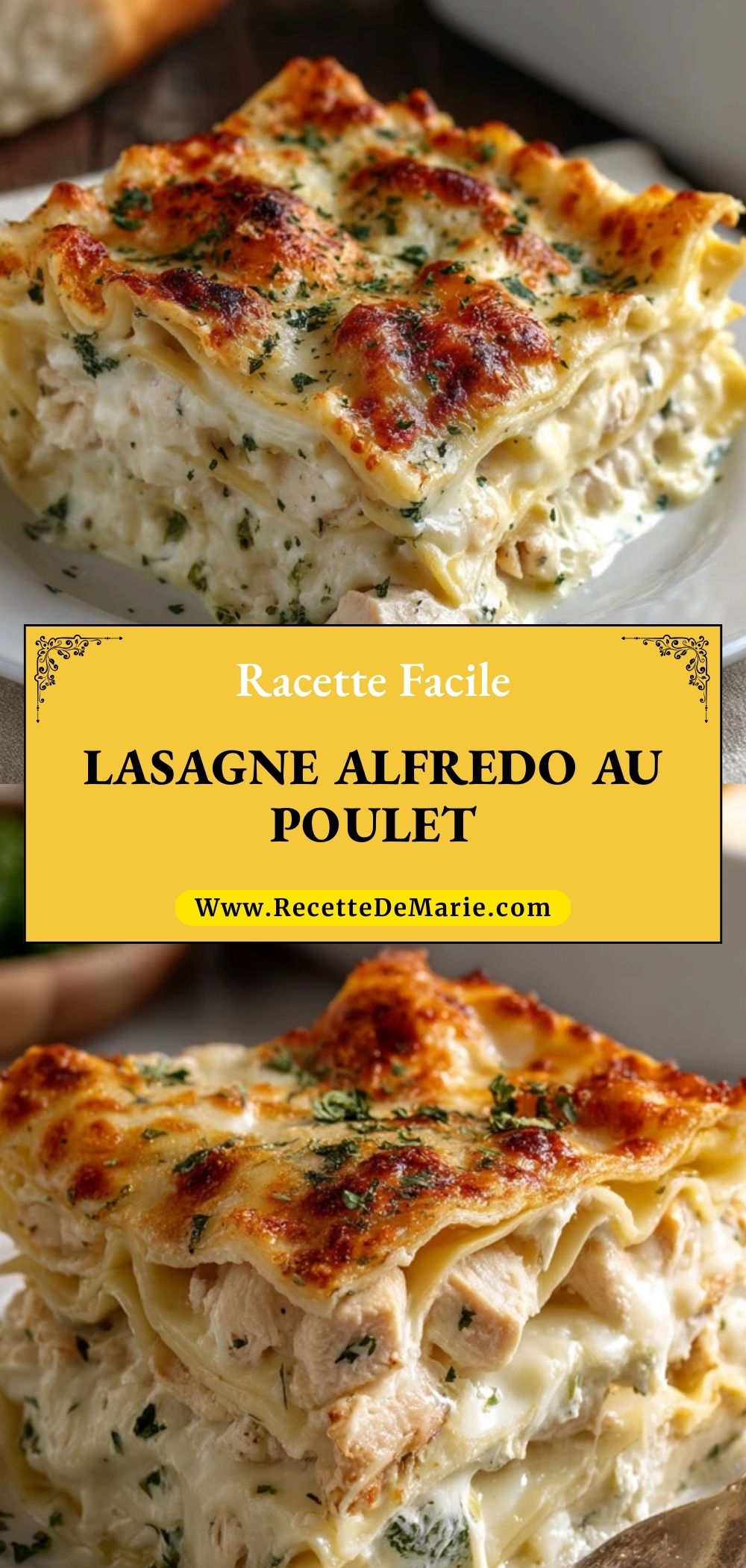 N’hésitez pas à garder cette recette sous la main, à l’enregistrer sur Pinterest et à la partager avec vos proches : personne ne résiste très longtemps à une part de lasagne bien crémeuse au poulet.