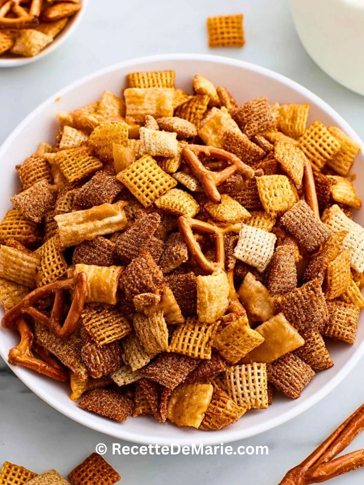 Ce mélange sucré salé au caramel et churros est une idée gourmande, croustillante et facile à préparer pour un apéritif sucré, un goûter festif ou une soirée cinéma. Réalisé avec des céréales croquantes, des bretzels et un enrobage au caramel parfumé à la cannelle, il offre une recette conviviale, rapide et irrésistible à partager en famille ou entre amis.