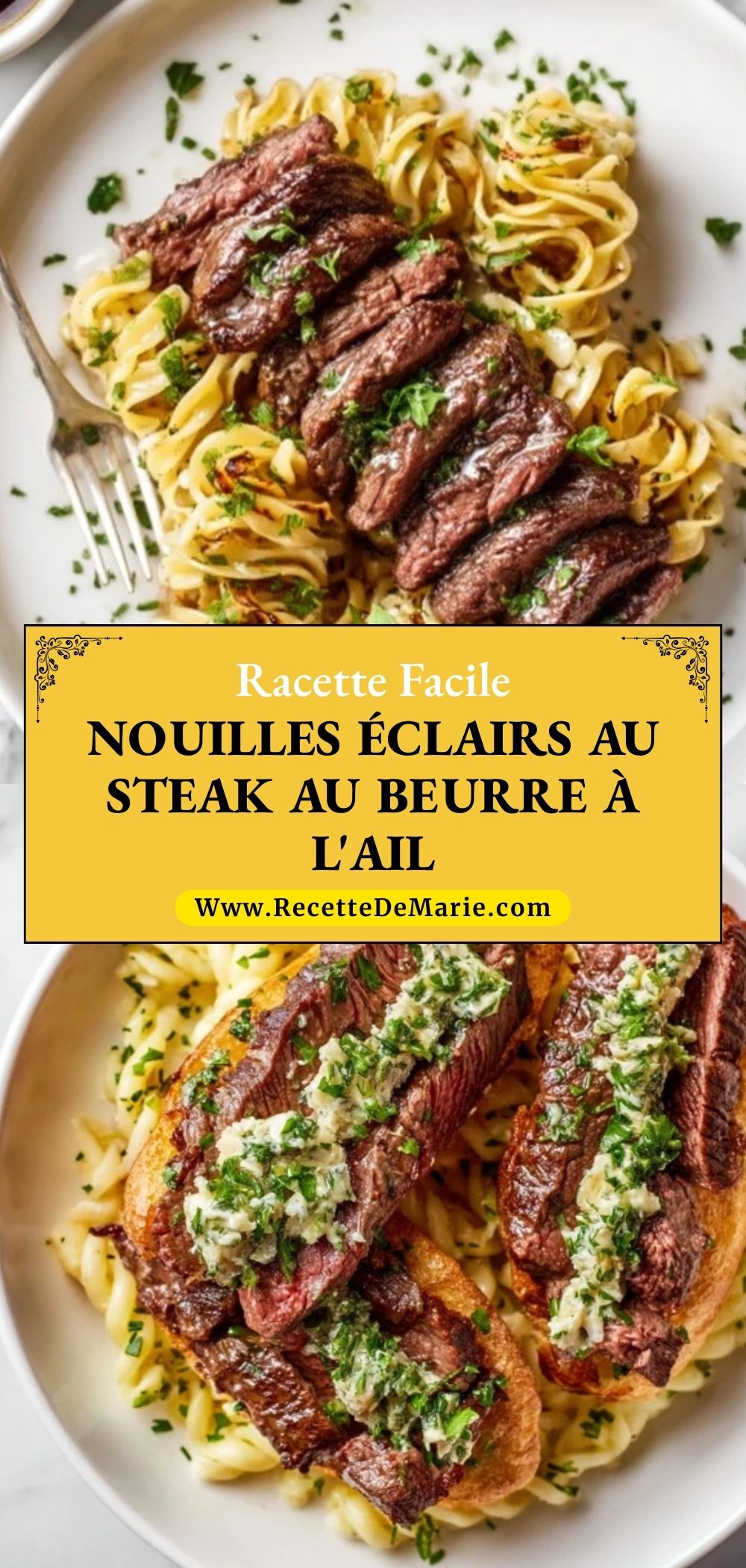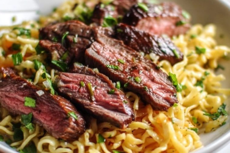 Nouilles éclairs au steak au beurre à l’ail, un plat express et gourmand : steak tendre, nouilles fondantes, beurre à l’ail et persil frais, idéal pour un dîner rapide. Recette facile, savoureuse et réconfortante, prête en moins de 30 minutes.