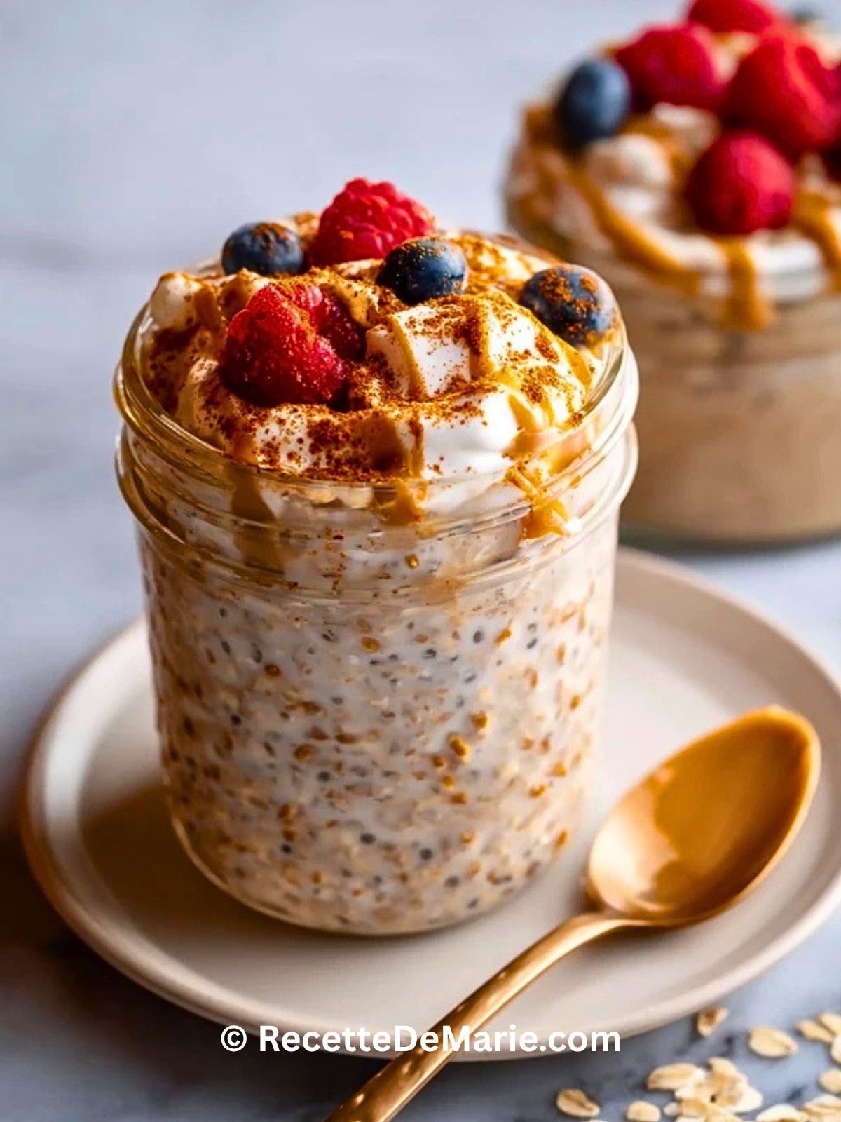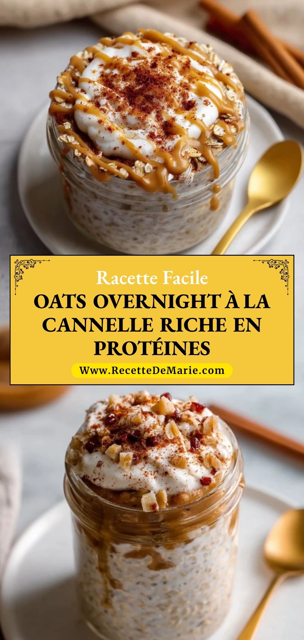 Keywords: oats overnight, avoine protéinée, petit-déjeuner sain, recette cannelle, meal prep, overnight oats protéinés