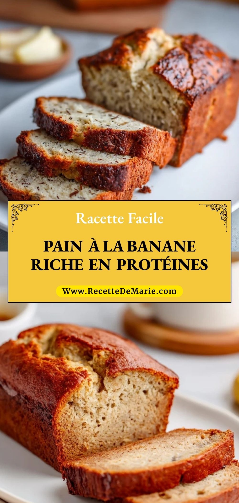 Keywords: pain à la banane riche en protéines, banana bread protéiné, petit-déjeuner sain, collation protéinée, cake à la banane