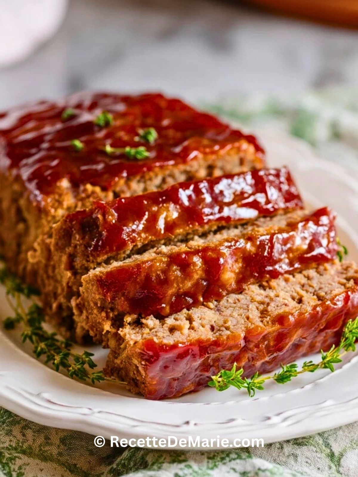 Oui, tu peux préparer le mélange de viande, le façonner dans un moule, le couvrir et le garder au réfrigérateur jusqu’au lendemain. Le jour J, il suffit de le sortir du frigo pendant que le four préchauffe, d’ajouter le glaçage et de cuire comme indiqué.