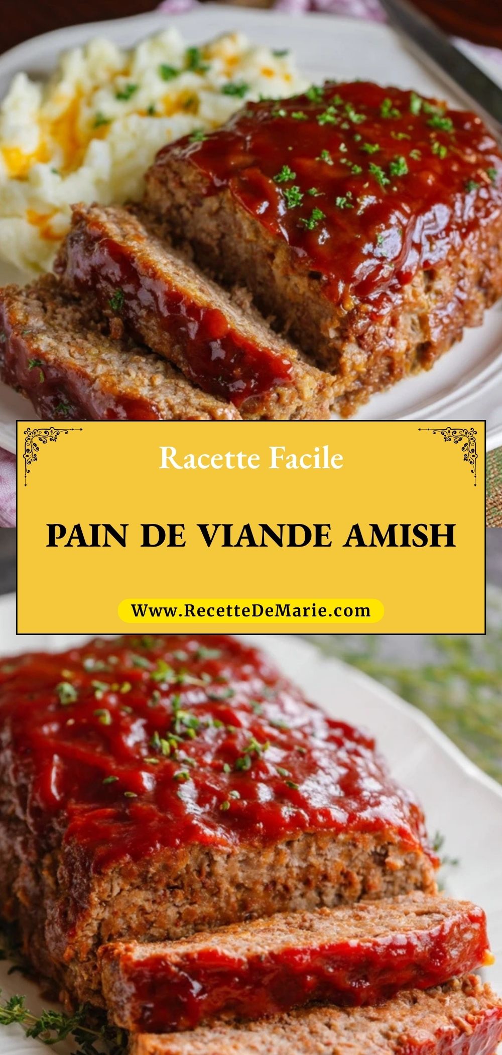 Keywords: pain de viande Amish,meatloaf Amish,recette familiale,plat réconfortant,viande hachée,glaçage sucré salé