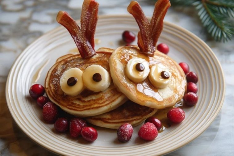 Des pancakes moelleux en forme de rennes à décorer en famille pour un petit-déjeuner magique et festif. Facile, ludique et délicieux, parfait pour les matins de Noël.