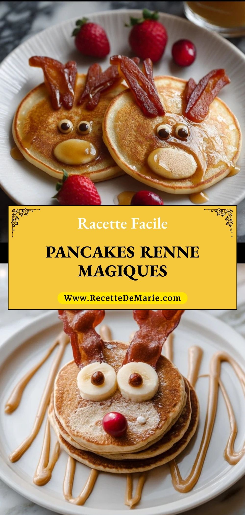 Dès que les fêtes approchent, j’adore transformer des recettes classiques en petits moments de magie pour toute la famille. Et ces Pancakes Renne Magiques sont exactement ça : une façon amusante et adorable de servir le petit-déjeuner de Noël. Leurs petites têtes de renne, avec le nez rouge, les bois en bretzel et les yeux curieux, font toujours sensation auprès des enfants — et des adultes aussi !