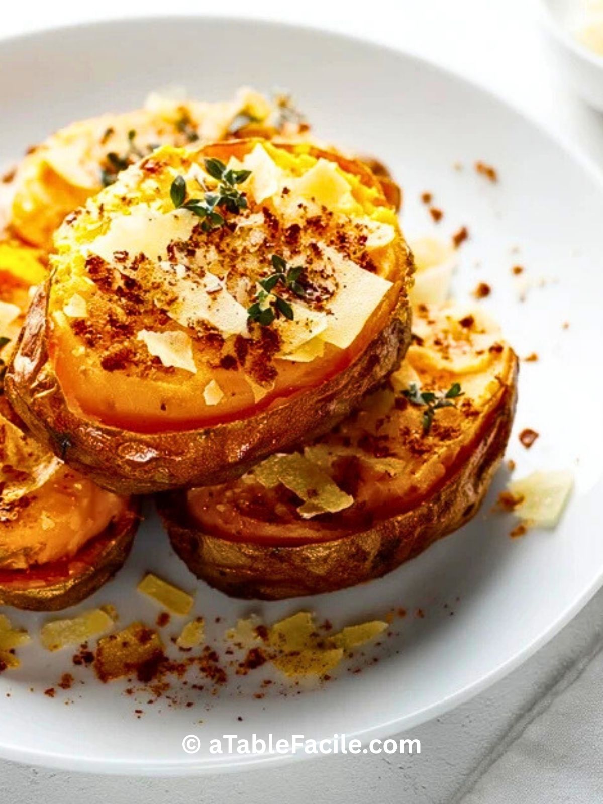 Patates douces au four croustillantes et fondantes, idéales en accompagnement ou garnies selon vos envies. Recette simple, saine, et gourmande, parfaite pour toutes les saisons. Convient aux végétariens et très facile à réussir.