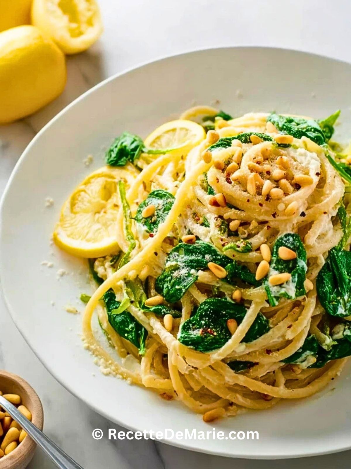 Pâtes à la Ricotta Citronnée avec Épinards et Pignons Torréfiés