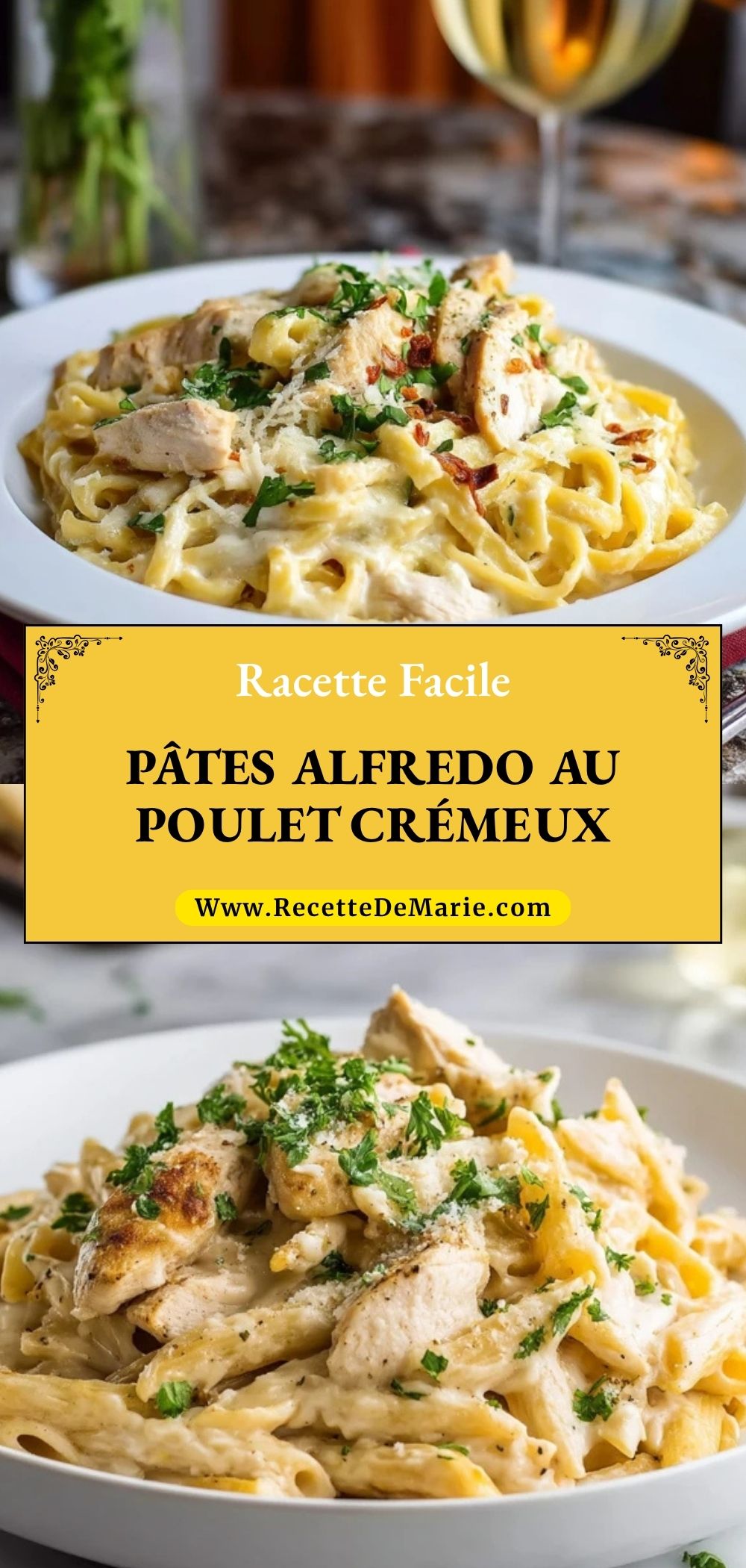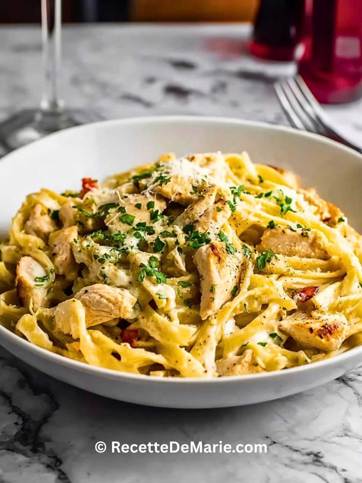 Keywords: pâtes Alfredo au poulet crémeux, fettuccine Alfredo, pâtes crémeuses maison, recette facile au poulet, dîner familial rapide